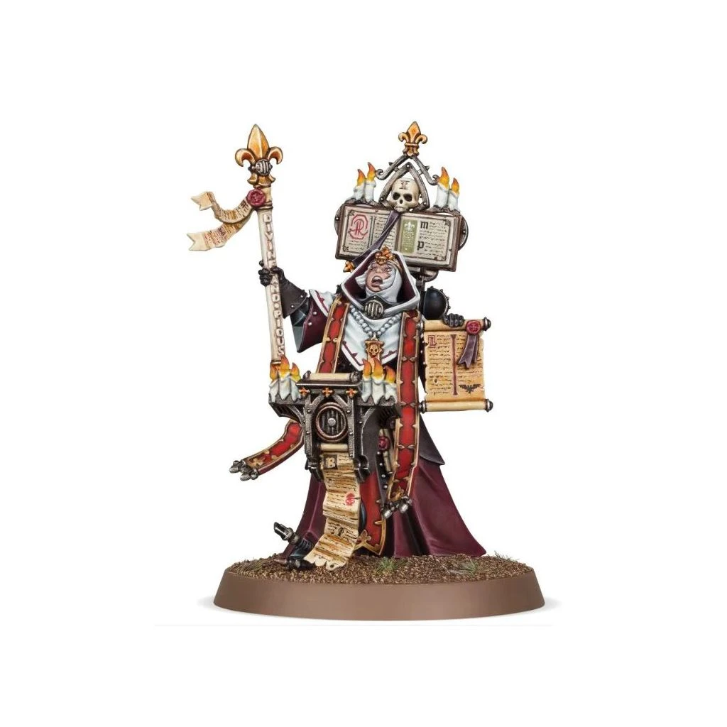 fanal de foi au milieu des lignes de l’Adepta Sororitas, et se dresse fièrement sur des promontoires exposĂ©s au feu pour dĂ©clamer ses sermons, alors que les faisceaux d’énergie et les balles fusent autour d’elle. Son laudaphone amplifie sa voix au point qu’elle rĂ©sonne au-dessus du fracas des combats. Ses paroles sont relayĂ©es par les canaux vox et les sensoriums, afin que toutes les guerrières de l’Adepta Sororitas Ă proximitĂ© bĂ©nĂ©ficient de sa puissante rhĂ©torique. Les dĂ©tonations de son pistolet bolter ponctuent les versets qu’elle rĂ©cite Ă pleins poumons.Â