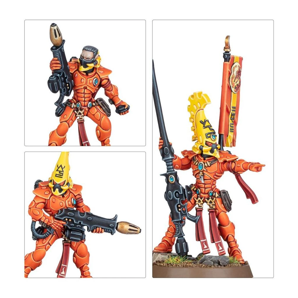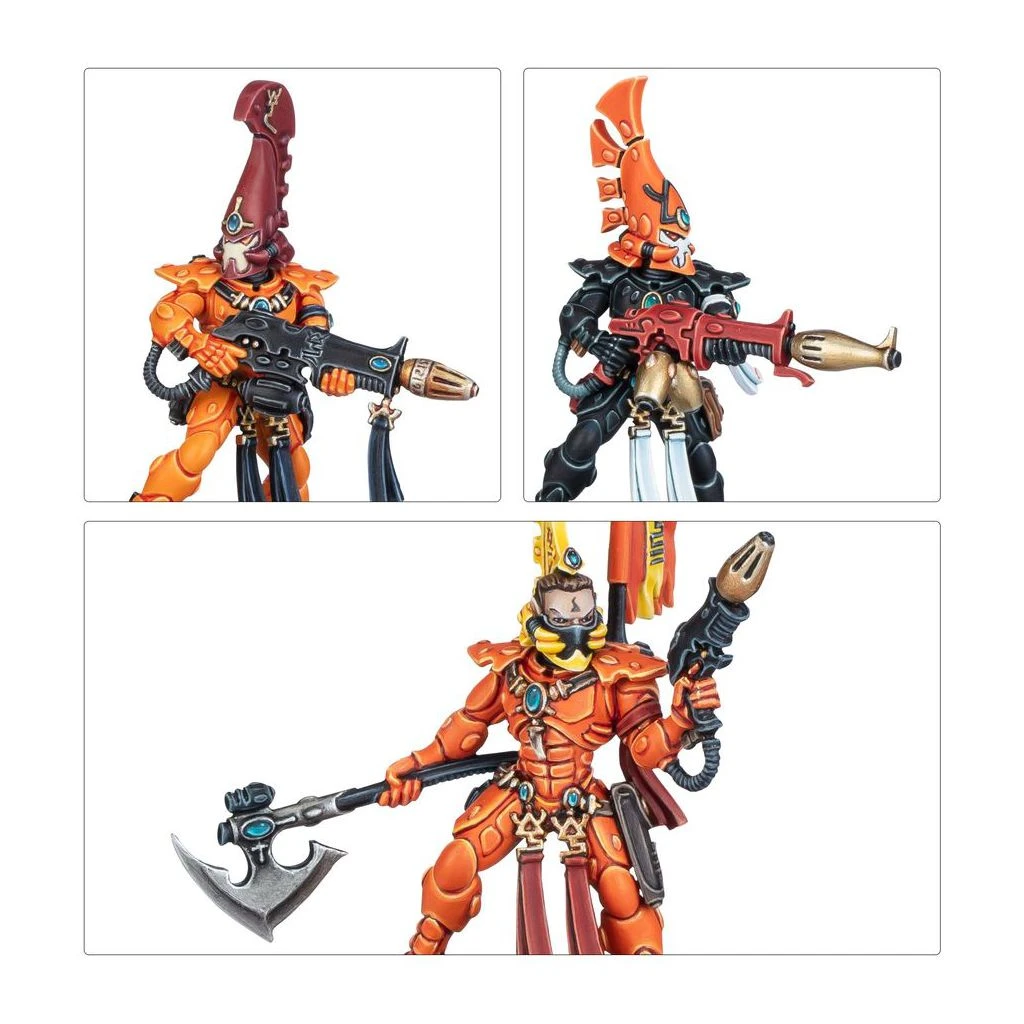 Un membre de l’escouade peut ĂŞtre assemblĂ© en tant qu’Exarque Dragon Flamboyant optionnel, qui peut ĂŞtre armĂ© de toute une variĂ©tĂ© d’armes telles qu’une pique de feu, une hache de Dragon, un pistolet Ă fusion de Dragon, un lance-flamme Souffle de Dragon ou un fusil Ă fusion de Dragon d’Exarque. Chacun des Dragons Flamboyants dispose de plusieurs options de tĂŞtes, notamment quelques choix de tĂŞtes nues, ce qui vous permet de personnaliser votre escouade, et l’un d’entre eux peut ĂŞtre assemblĂ© avec une grenade. Ce kit contient Ă©galement un pion de Temple Aspect des Dragons Flamboyants.