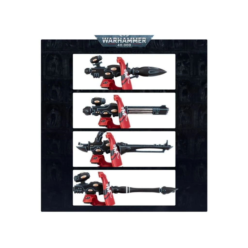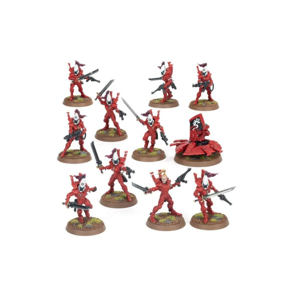 Ce set se compose de 152 pièces plastique et est fourni avec 10x socles ronds Citadel de 28,5mm, 1x socle rond Citadel de 40mmm, et 1x Feuille de Décalcomanies Aeldari. Ces figurines sont fournies non peintes et nécessitent assemblage.