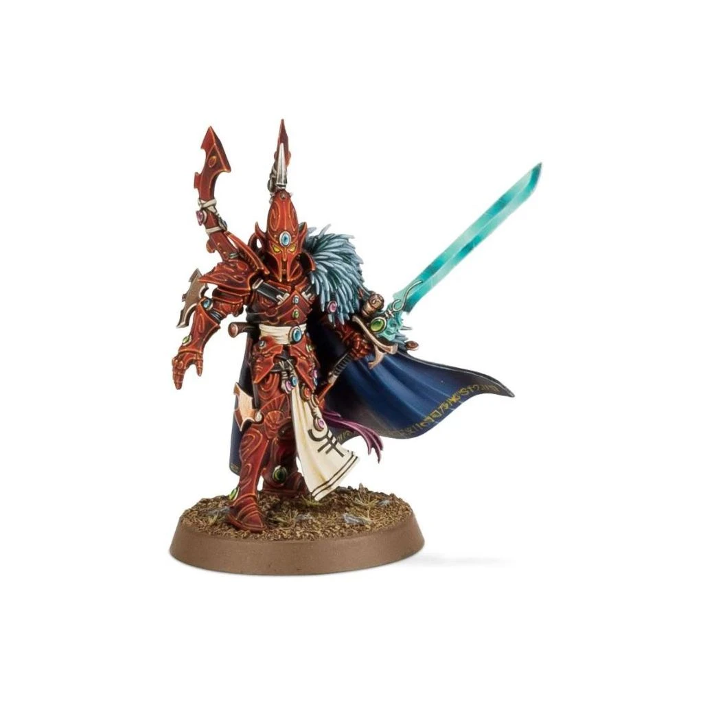 Le Visarque fonce au milieu de l’ennemi, en tranchant têtes et membres avec Asu-var, l’Épée des Cris Aphones, l’une des fabuleuses Épées Déchues. Les nombreux visages qui ornent son antique armure de Bel-Anshoc représentent les personnalités qu’il peut adopter au combat, qui comprennent la lame sûre d’un Exarque et les prouesses acrobatiques d’un Céraste Drukhari.