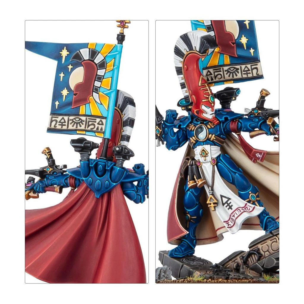 son génie tactique. Outre ses catapultes shuriken en brassards appelées les Jumelles Sanglantes, le Seigneur Phénix manie l’Épée d’Asur, dont la garde abrite la pierre-esprit de Tethesis, le frère d’Asurmen.
