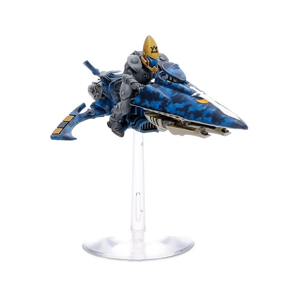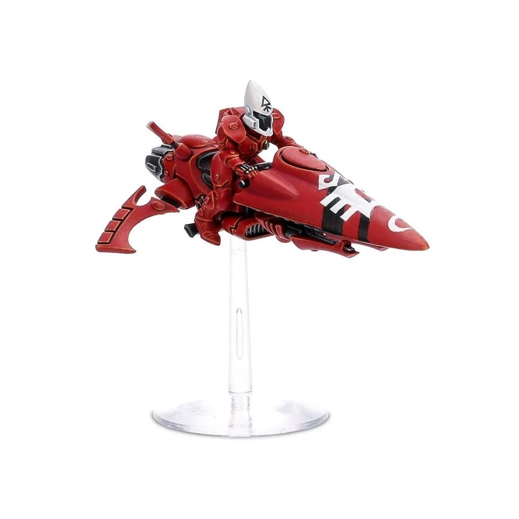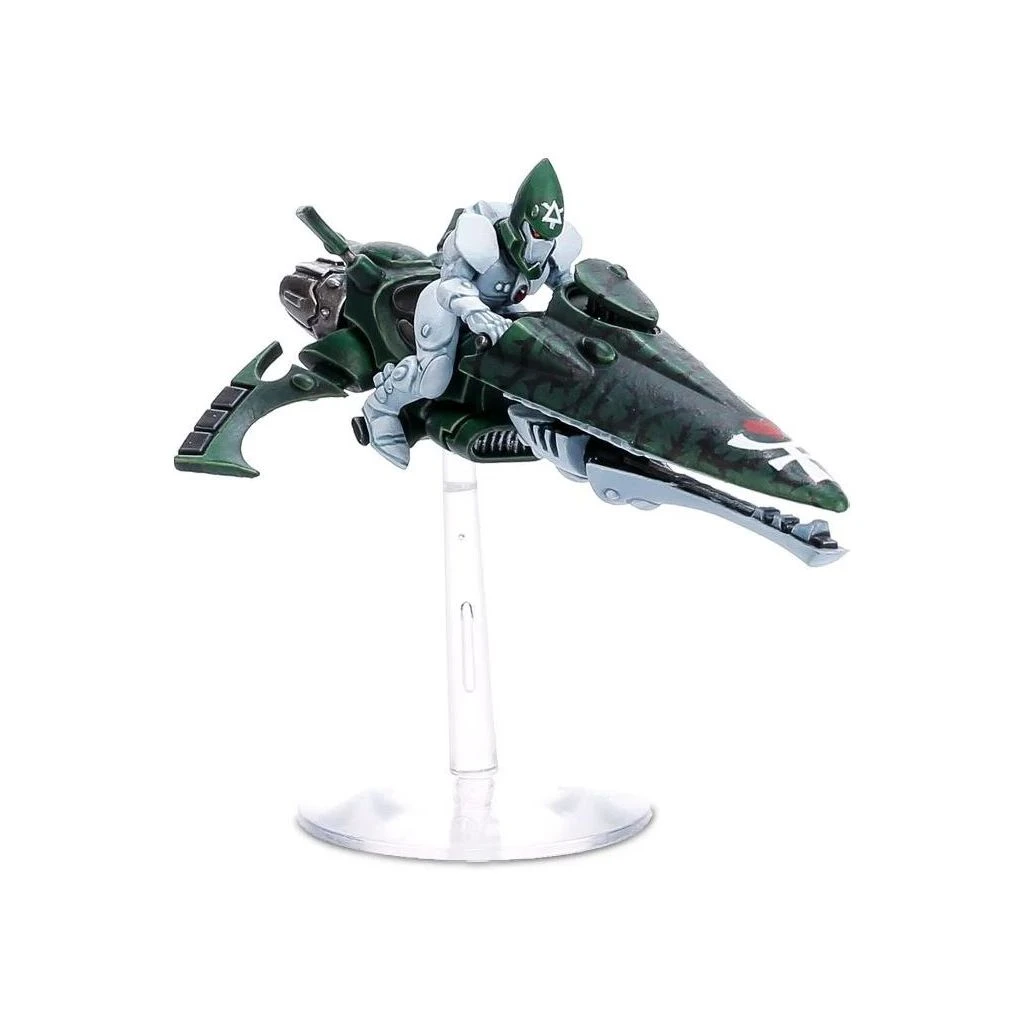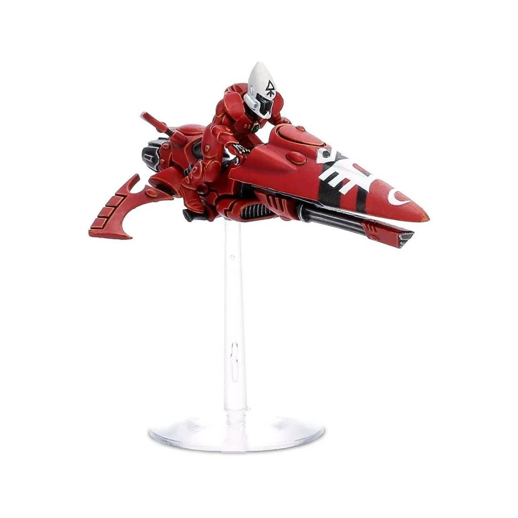 Ce kit plastique en 72 pièces permet d’assembler trois Windriders Aeldari. Leurs motojets au carénage fuselé disposent de capteurs à l’arrière qui ajoutent un degré de détail intéressant, et elles ont l’option d’un affichage tactique relevé, prêt pour une passe de mitraillage. Leurs catapultes shuriken peuvent être améliorées soit en canon shuriken, soit en rayonneur laser; il y en a trois de chaque dans le kit, soit neuf options d’armes au total. également inclus, trois nouveaux casques de Guardian, trois petits socles volants et une planche de décalcomanies Aeldari.