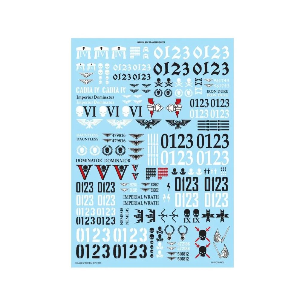 Ce kit est composé de 381 éléments en plastique et d’une planche de décalcomanies de Baneblade avec 253 décalcos. Cette figurine est fournie non peinte et nécessite assemblage