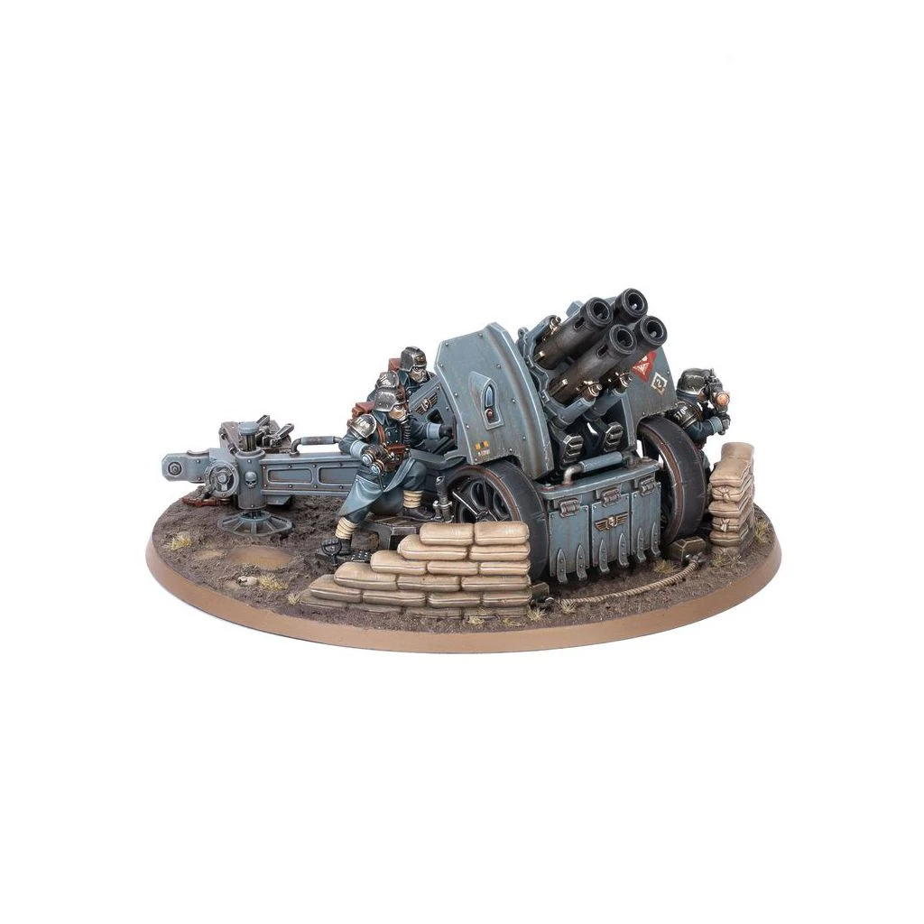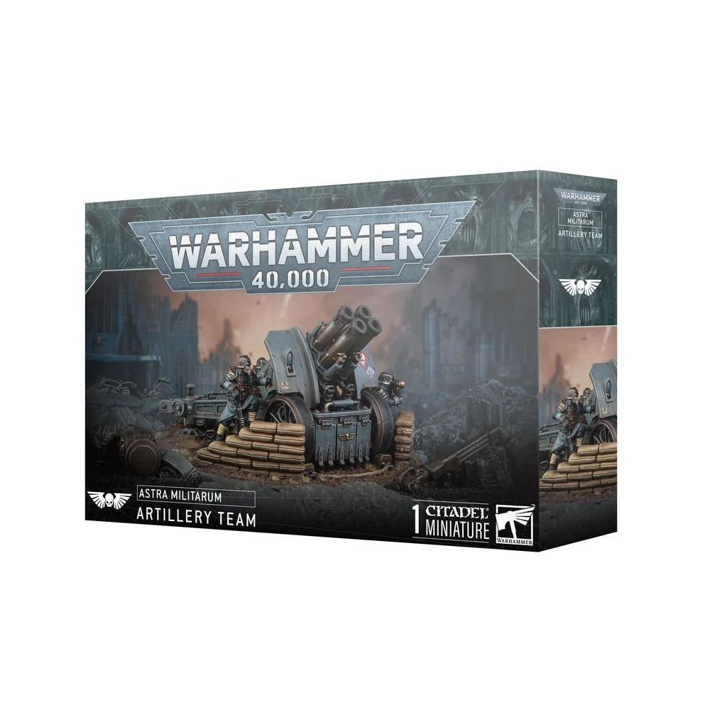 Les Équipes d’Artillerie de l’Astra Militarum utilisent un armement lourd et varié pour annihiler l’ennemi à très longue portée. Les diverses munitions employées par ces armes lourdes sont capables d’éliminer des escouades entières de fantassins, d’éventrer des bunkers renforcés ou encore de ravager des convois de blindés.