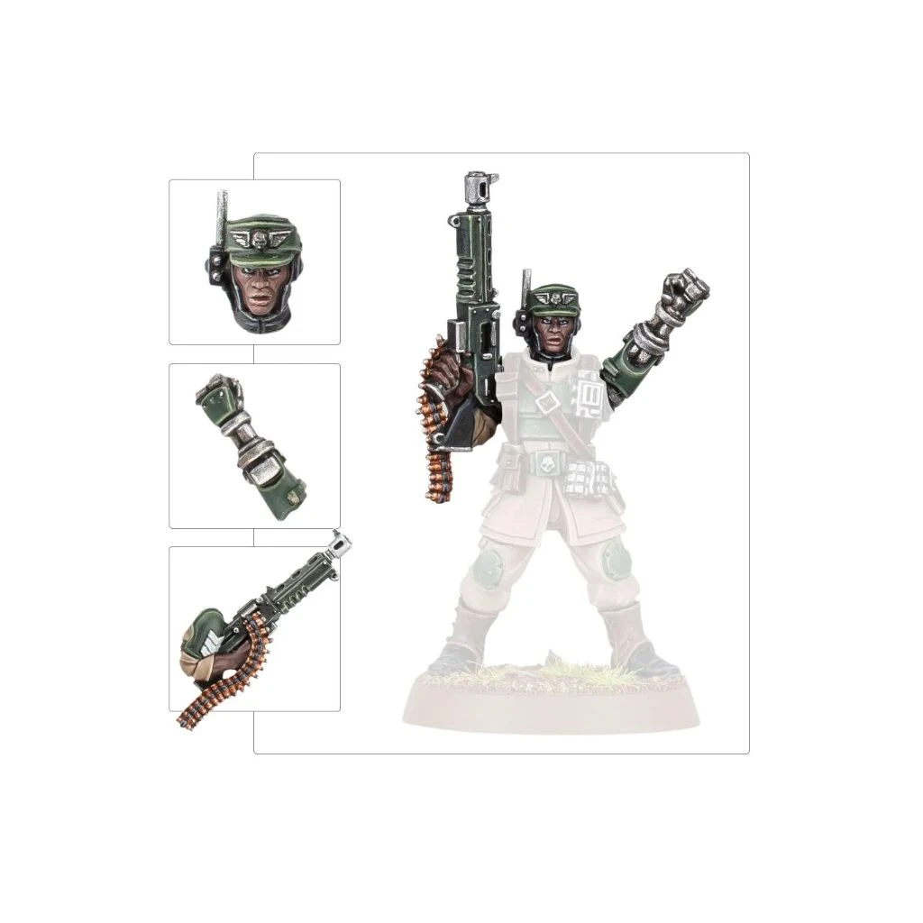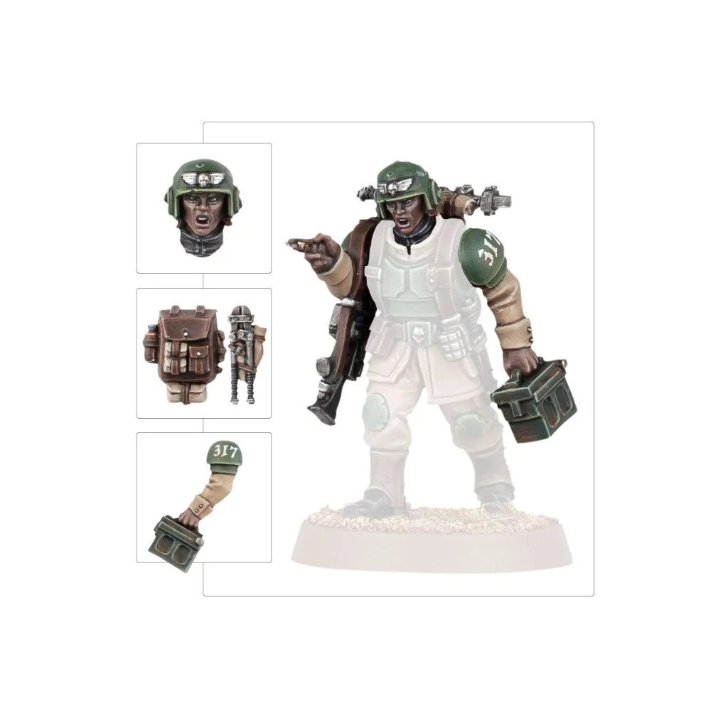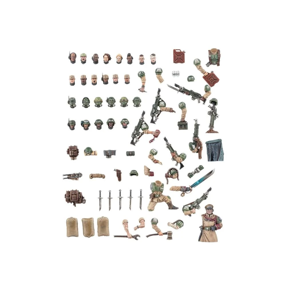 Ce set d’amélioration est composé de 87 éléments en plastique et est conçu pour être assemblé avec d’autres kits en plastique de l’Astra Militarum, vendus séparément. Ces éléments sont fournis non peints et nécessitent assemblage
