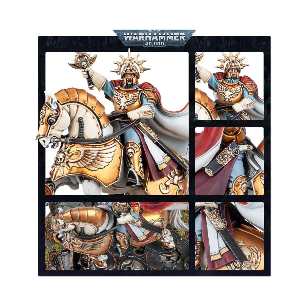 Ce kit plastique permet d’assembler le Seigneur Solaire Leontus, un commandant suprême de l’Astra Militarum, chevauchant son destrier lourdement cybernétisé Konstantin. Dressé sur les ruines d’un Titan abattu, le Seigneur Solaire brandit fièrement son épée énergétique relique, Conquête, tandis que son pistolet ésotérique, appelé Regard du Juste de Sol, est glissé dans le holster à sa ceinture. Sa posture de commandement est accentuée par sa cape qui vole au vent et sa sublime armure. Ce kit contient deux têtes au choix ; l’une affiche une expression stoïque avec la bouche fermée, et l’autre est en train de hurler des ordres aux troupes, toutes deux portant un impressionnant heaume surmonté d’un halo solaire. Si vous cherchez une pièce centrale vraiment saisissante pour votre collection de l’Astra Militarum, ne cherchez pas plus loin : le Seigneur Solaire Leontus est l’officier le plus haut gradé que vous trouverez.
