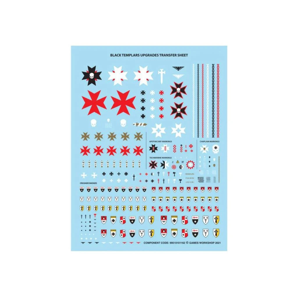 6x pièces pour décorer les véhicules, dont 5x Icônes Black Templars et 1x épée relique/décoration de châssis.
