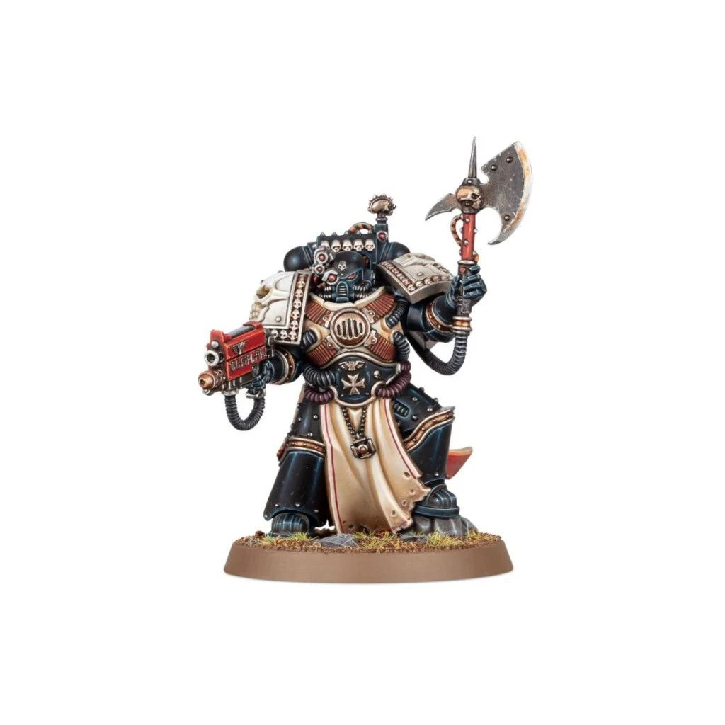 Basé sur l’illustration Black Templars emblématique de John Blanche, ce Castellan apporte les effets d’amélioration d’un lieutenant avec un style unique. Couvert d’effigies de crânes, maniant un combi-lance-flammes et une hache énergétique de maître, cette figurine distinctive est le moyen idéal d’ajouter une touche rétro à votre force de Black Templars.