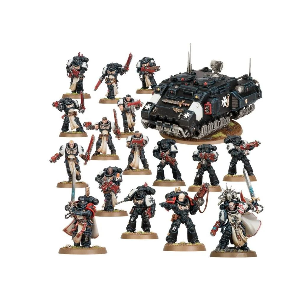 Priez l’Empereur-Dieu et entrez dans la bataille avec la boîte de Patrouille: Black Templars. Ce set vous fournit toutes les unités nécessaires pour débuter, ou pour agrandir une force existante. Le contenu de ce set a été spécifiquement conçu pour vous que vous ayez la force de Black Templars idéale pour les parties au format Patrouille – pour un Niveau de Puissance de 25 environ.