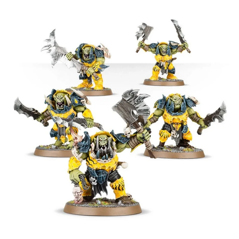 Créatures pataudes à l’ossature lourde, au front bas et à l’armure épaisse, les Brutes orruks ne se soucient point des choses compliquées dans la vie. Il n’y a de place dans leur esprit que pour une chose: la violence. Plus gros et plus durs que la plupart des guerriers des Royaumes Mortels, les Brutes fournissent aux clans une quantité apparemment illimitée de peaux-vertes, de cris haineux et d’agressivité crasse. Comme on dit, si ça résiste, c’est juste qu’il faut taper avec plus de monde! Les Brutes cherchent les plus gros ennemis disponibles – ou un arbre voire un mur, à défaut – et se mettent à taper avec détermination, vite rejoints par des douzaines de leurs semblables, et tout s’efforcent d’abattre l’ennemi (ou l’objet) qui a l’outrecuidance d’être plus gros qu’eux.