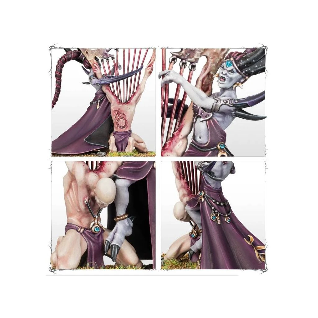 L’Infernal Enrapturess est un personnage de soutien crucial pour toute armée de Slaanesh. Si elle est capable de déchiqueter ses ennemis de loin avec ses attaques soniques, sa véritable force repose dans ses aptitudes utilitaires, que ce soit à Warhammer 40,000 ou à Warhammer Age of Sigmar. Les démons de Slaanesh s’en trouvent plus faciles à invoquer, alors que les psykers et sorciers adverses courent un grave péril à utiliser leurs pouvoirs et leurs sorts.