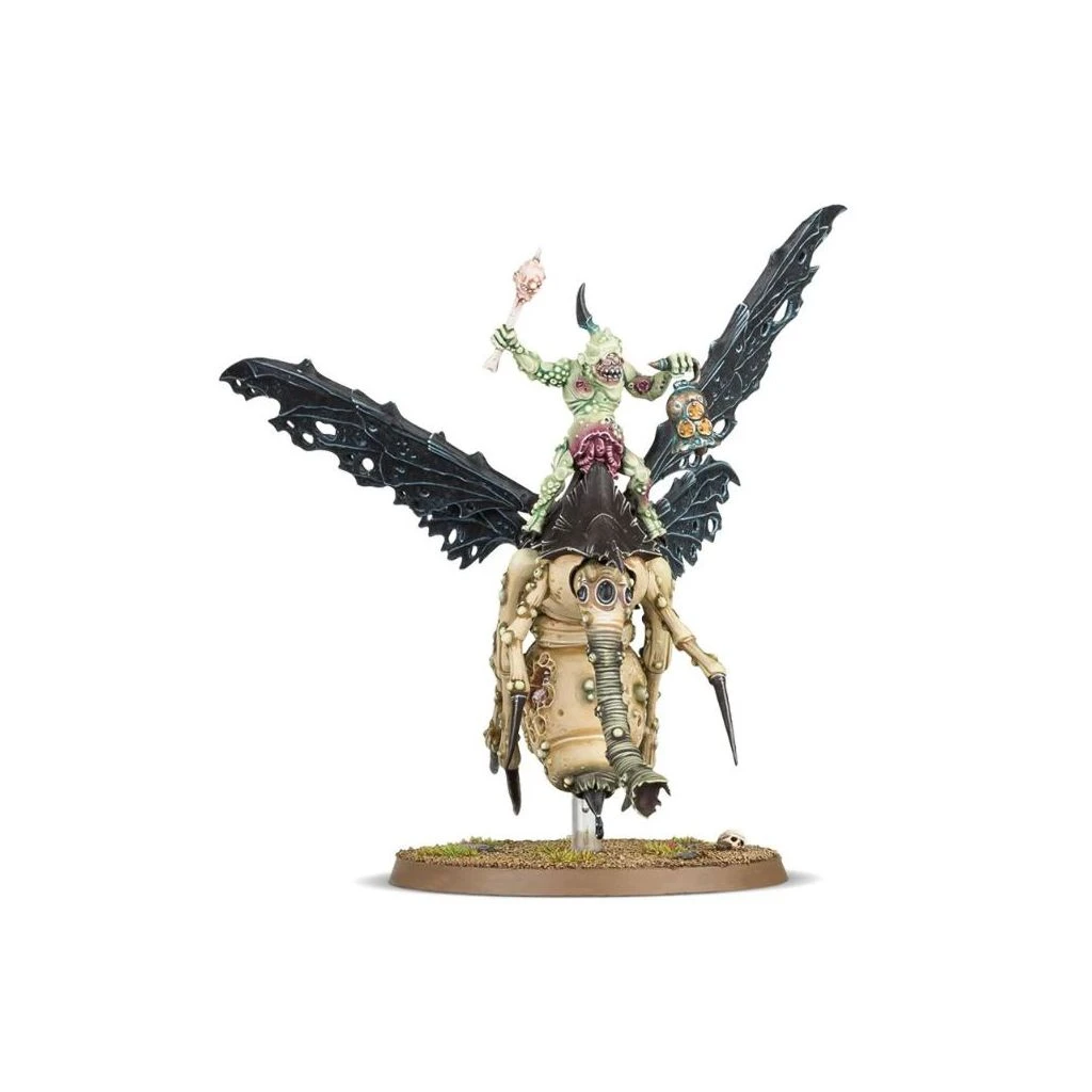 Les portepestes de haut rang sont connus parmi les légions de démons comme les drones de la peste, un titre qui implique une humilité louable. Ces contremaîtres du royaume de Nurgle traversent le plan des mortels sur des mouches à peste, d’imposants insectes démoniaques dont l’apparence répugnante choque l’esprit.