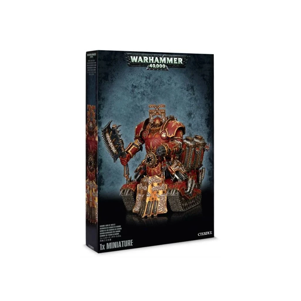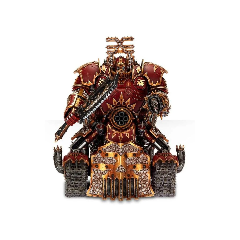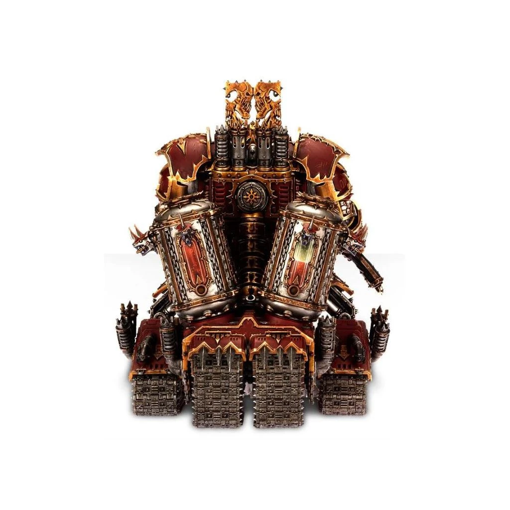 Cette machine démon de Khorne extrêmement massive a été conçue dans les forges infernales dans le seul but de tuer, mutiler et brûler ses ennemis jusqu’à ce qu’il ne soient plus que de la bouillie sous ses puissantes chenilles.
