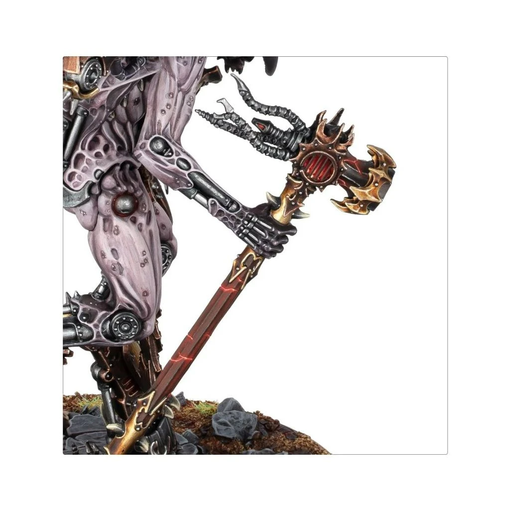 Ce kit plastique permet d’assembler Vashtorr l’Arkifane, le maître des forges et manufactorums démoniaques. Ce personnage dégingandé et surnaturel est couvert de sinistres détails cybernétiques, des pots d’échappement et cheminées qui saillent de son dos courbé aux mécavrilles qui grouillent sur son socle scénique. Il manie un odieux marteau de forgeron dans une main, tandis que l’autre s’étire en une cruelle griffe cybernétique dans laquelle est intégrée une arme cracheuse de flammes. Vashtorr porte une carapace blindée avec un tablier de métal segmenté, mais il peut être assemblé sans cette armure pour exposer la forme grotesque qu’elle dissimule.