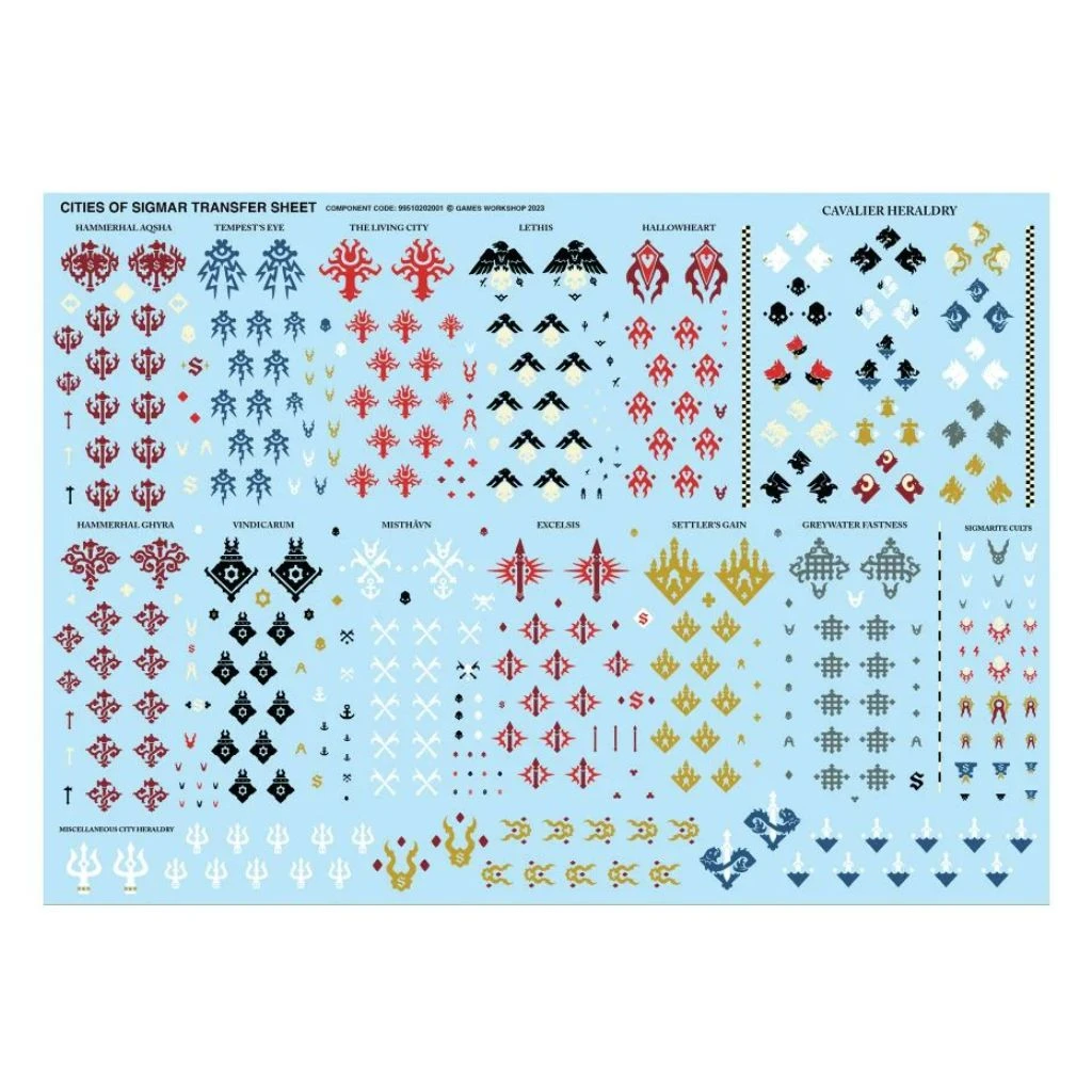 Ce kit comprend 96 composants plastique et 10x socles ronds Citadel de 25mm. Également incluse, une planche de décalcomanies des Cités de Sigmar, avec 410 icônes de Cité Franche, des symboles du culte de Sigmar et autres formes d’héraldique.
