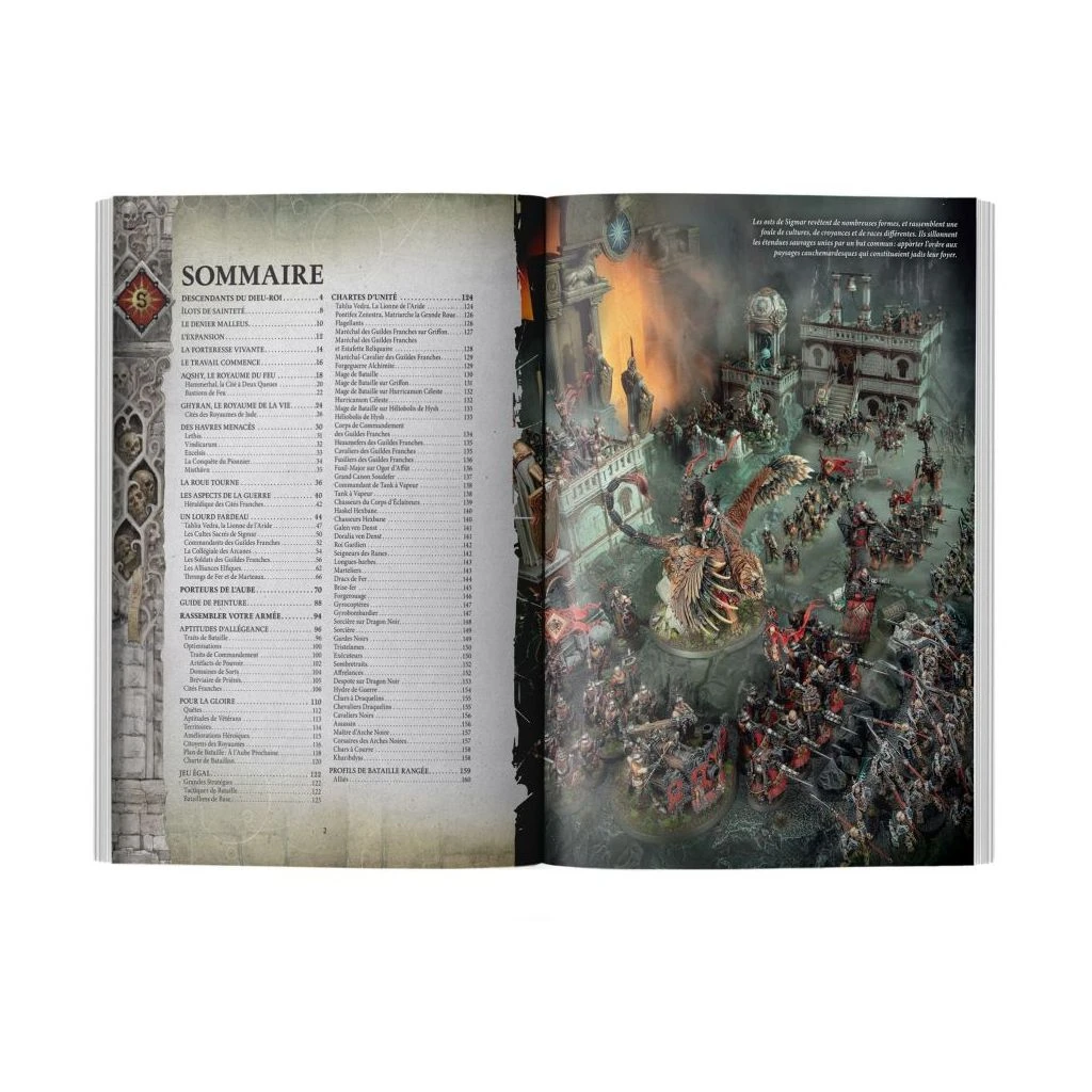 – Des règles de jeu égal, avec quatre grandes stratégies, six tactiques de bataille, et un bataillon de base propre aux Cités de Sigmar