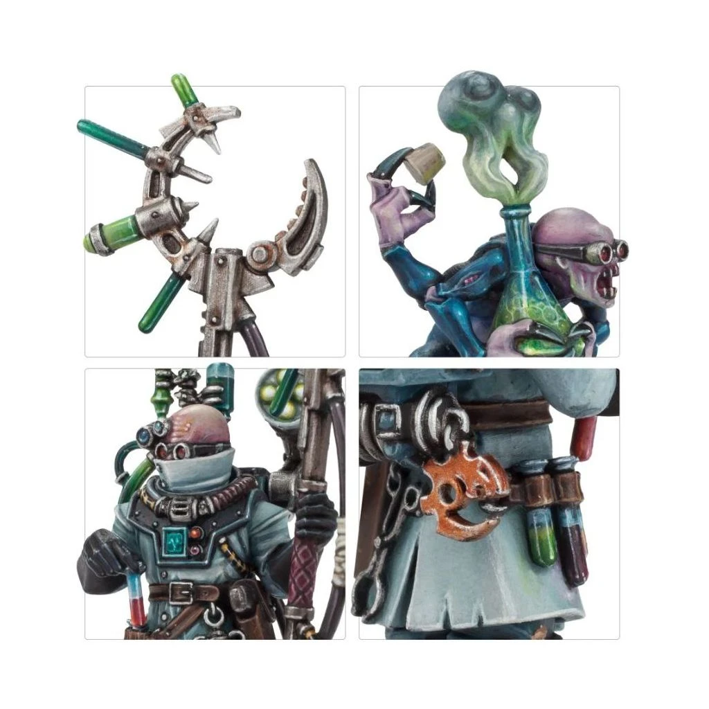 En plus d’accorder des bonus conséquents à une unité d’Aberrants des Genestealer Cults voisine, le Biophagus est lui-même est un combattant redoutable en mêlée, qui fait bon usage de son aiguillon injecteur. Son Alchemicus Familiar lui prête main-forte pour renforcer ses congénères mutants, et ainsi rendre encore plus dangereux les massifs Aberrants de votre armée.