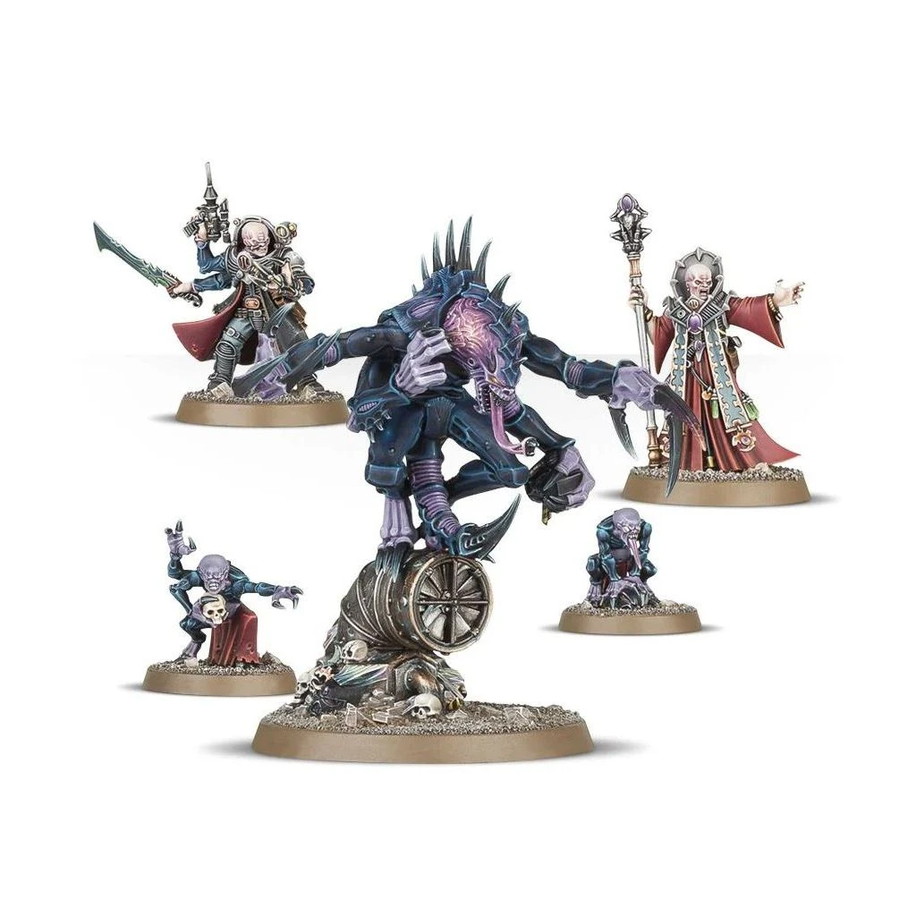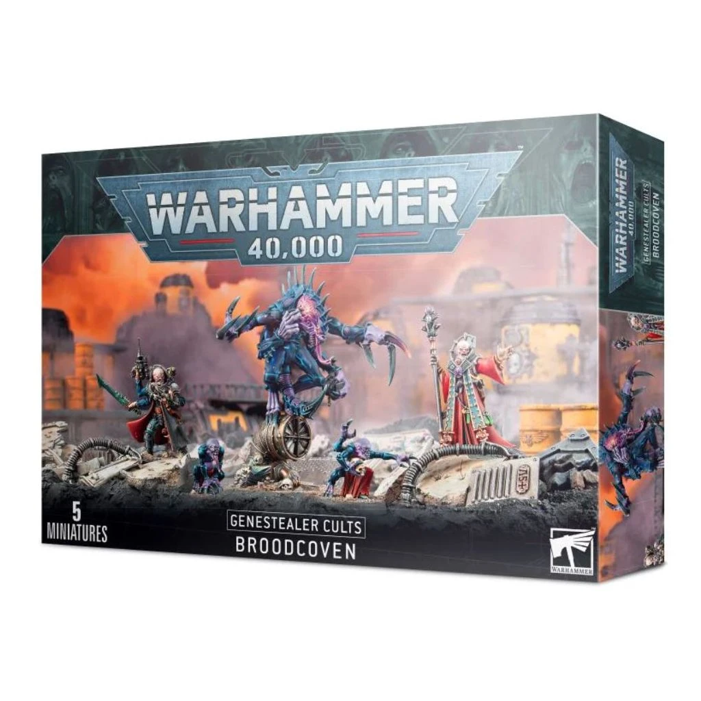 Cette boîte contient tous les composants nécessaires pour assembler le Broodcoven, une formation décrite dans le Codex: Genestealer Cults. Vous recevrez un Patriarch, un Primus armé d’un pistolet à aiguille, d’une épée d’os et d’un injecteur de toxines, ainsi qu’un Magus, armé d’un pistolet mitrailleur et d’un sceptre de force, le tout accompagné de 2 Genestealer Familiars. Un assortiment de figurines des Genestealer Cults charismatiques et mortelles.