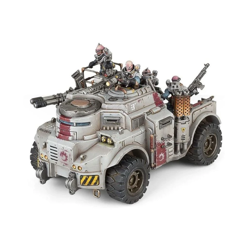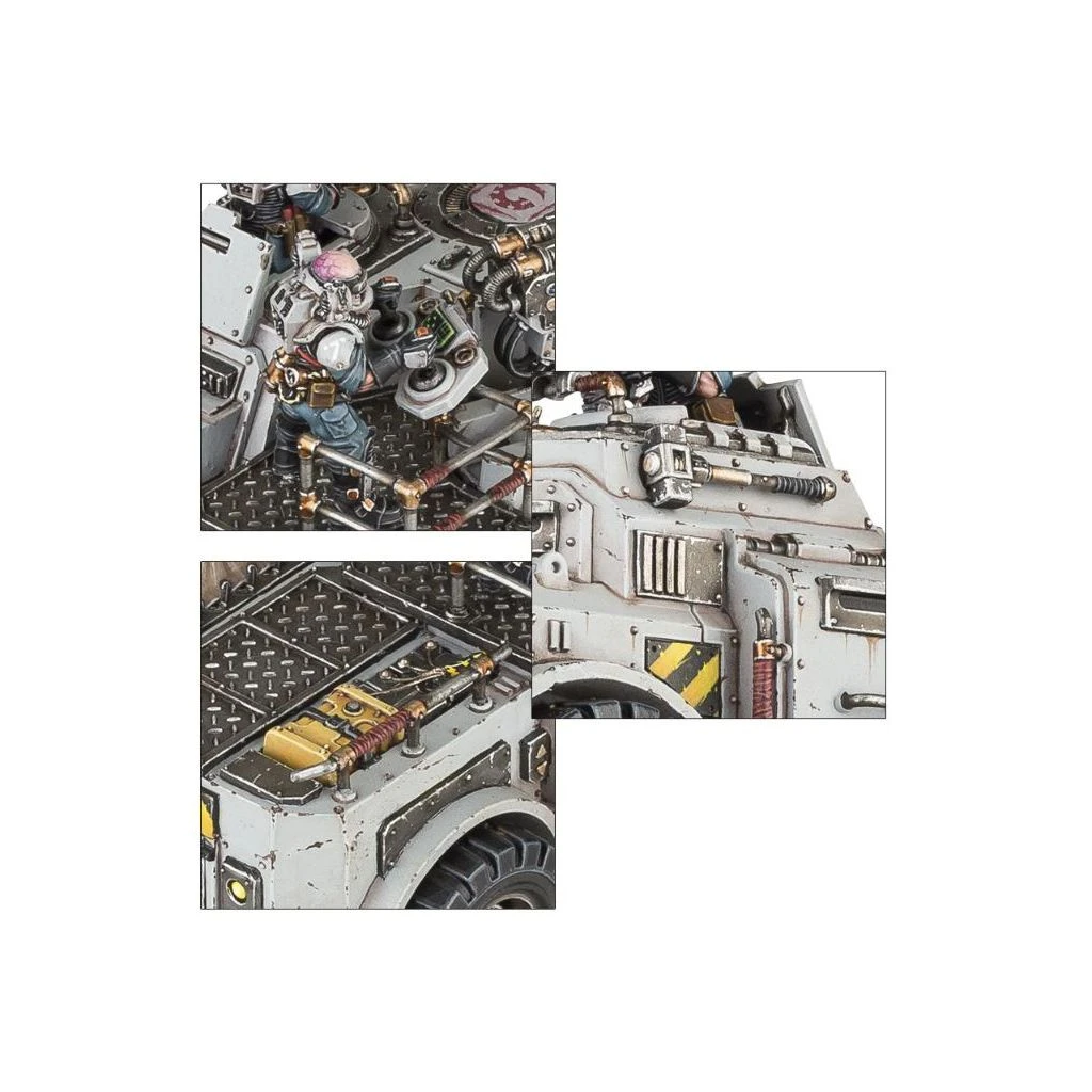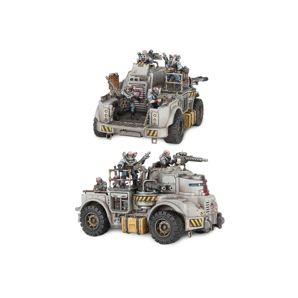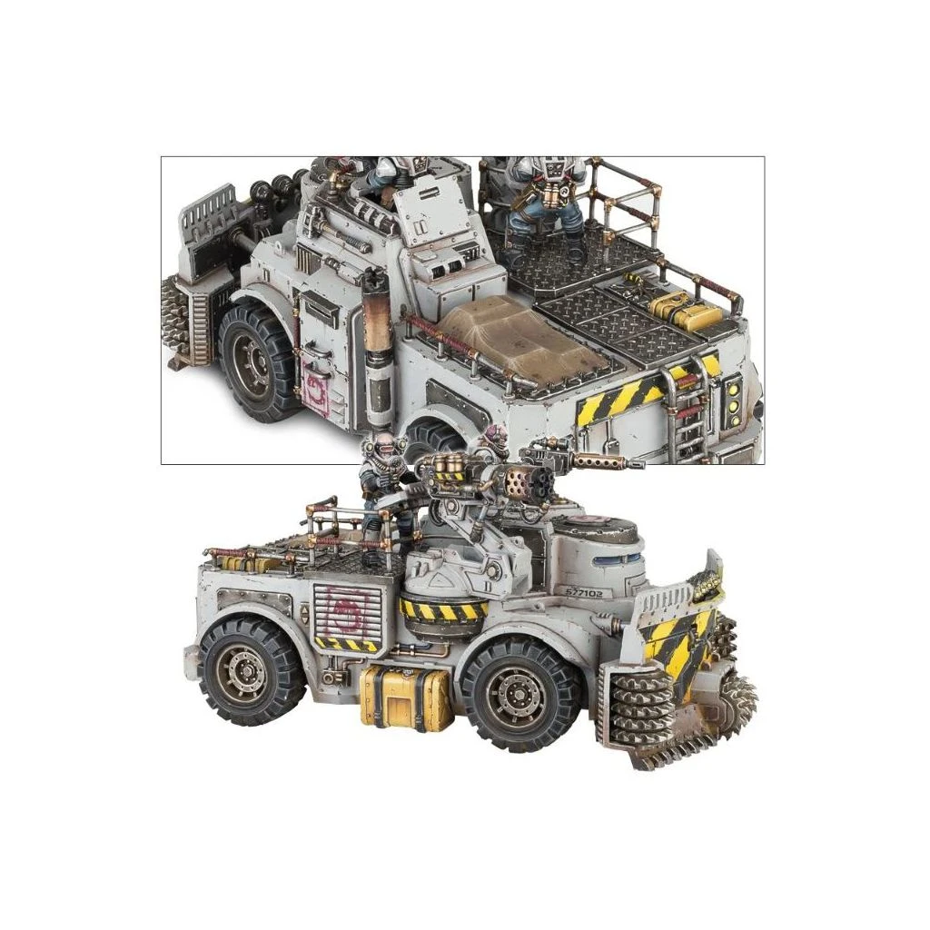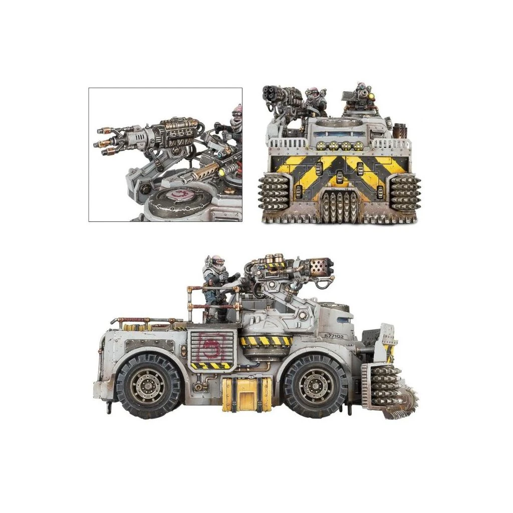 Ce kit plastique contient tous les composants nĂ©cessaires pour assembler un Goliath Truck, vĂ©hicule de transport et d’attaque des Genestealer Cults. Il est Ă©quipĂ© d’une mitrailleuse lourde et d’un autocanon jumelĂ©, avec une tonne d’options de personnalisation. Les 4 membres d’Ă©quipage ont leurs propres options, et on peut rehausser la suspension pour avoir plus de garde au sol.