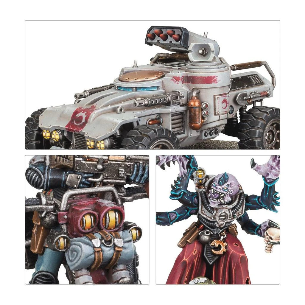 Les armées des Cultes Genestealers contournent leurs ennemis par l’infiltration et à l’aide d’horreurs griffues et de miliciens crasseux, qui surgissent des égouts et des réseaux de canalisation pour atteindre leurs proies. Ils préparent des sites d’embuscade et des zones de tir, constituent des flottes de véhicules réaffectés et de motos tout-terrain pour apparaître depuis un angle inattendu pour écraser l’ennemi chancelant.