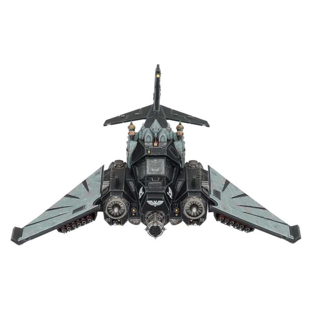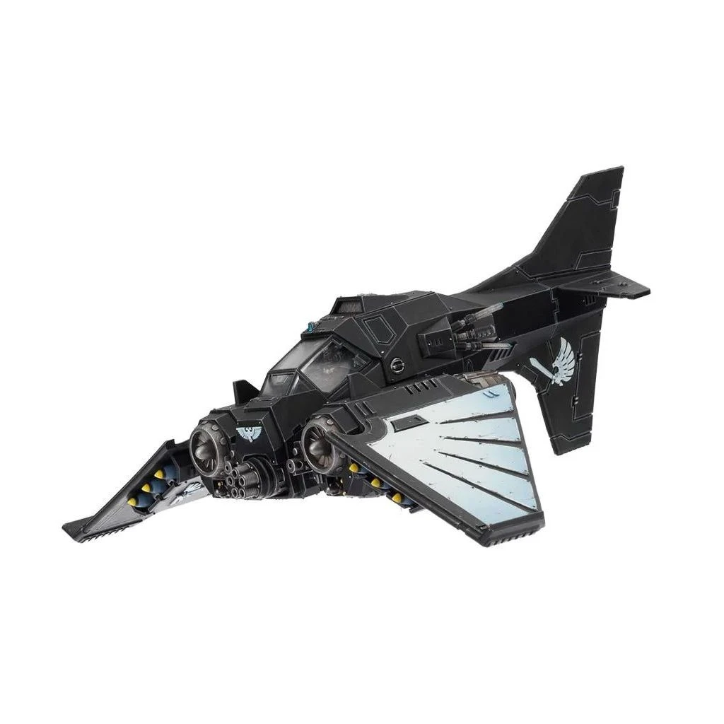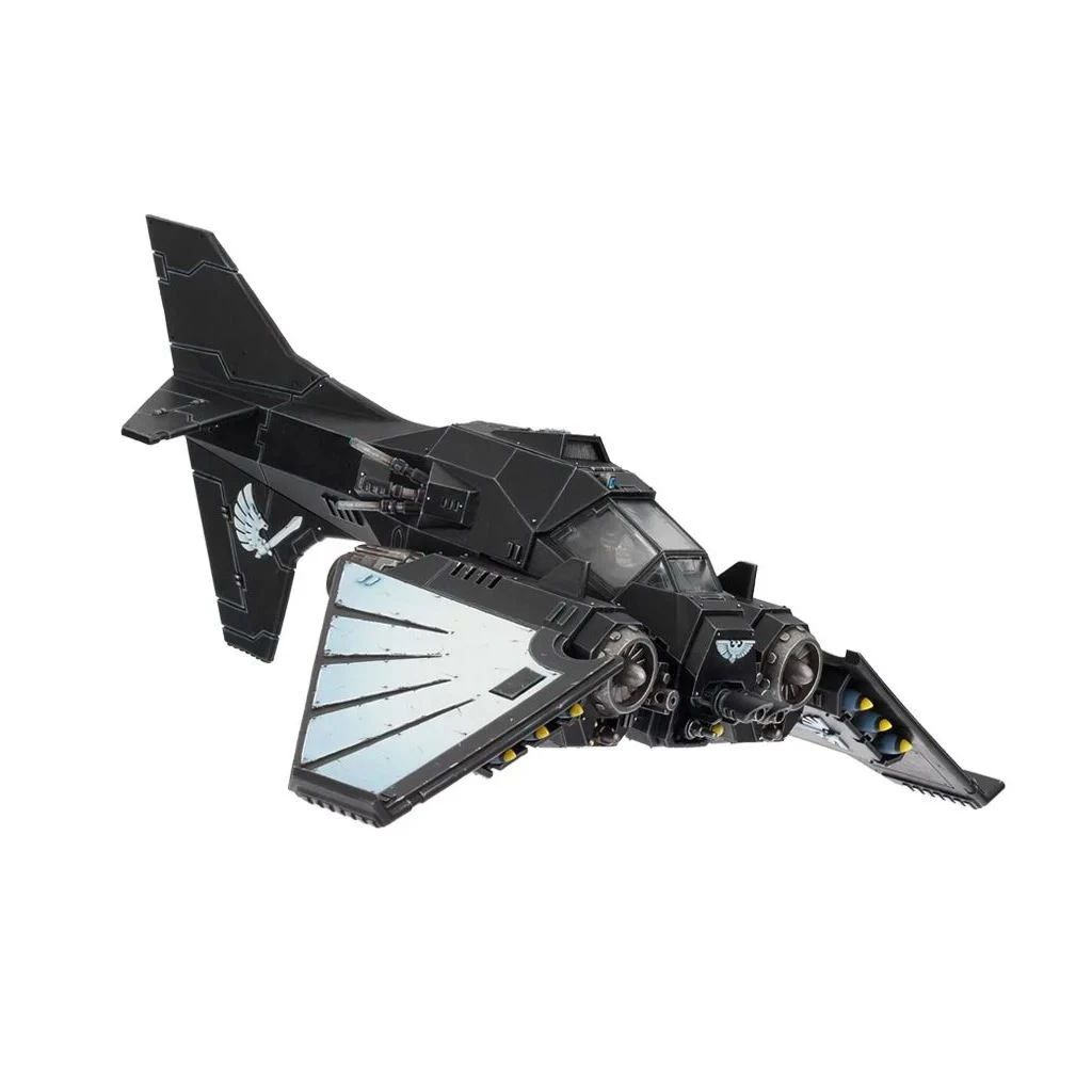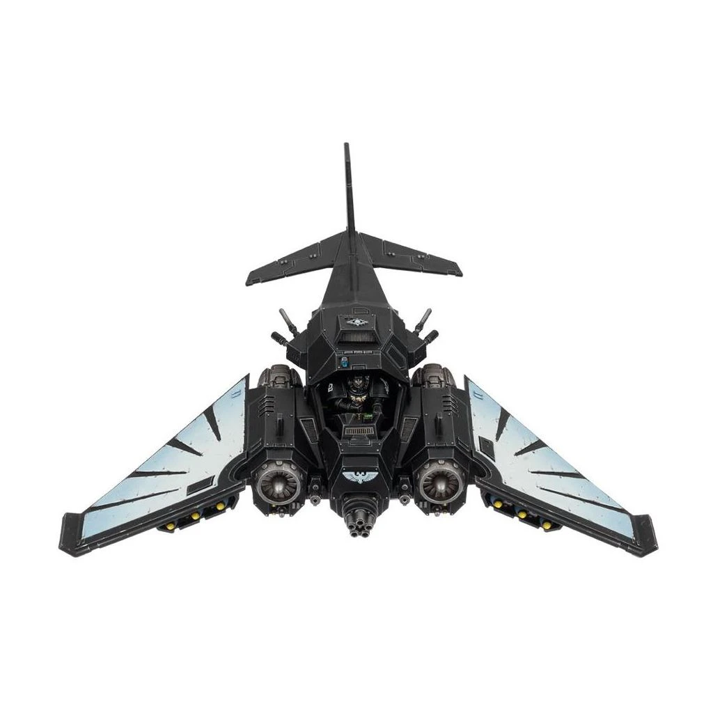 Ce kit plastique permet d’assembler un Dark Talon de la Ravenwing ou un chasseur Nephilim, des aéronefs aussi impressionnants l’un que l’autre, et que tout collectionneur des Dark Angels désirera posséder. Rappelant à certains égards le Storm Talon, ce kit est indéniablement lié au chapitre des Dark Angels, comme le prouve son iconographie. Le Dark Talon de la Ravenwing comporte des motifs typiques des artéfacts originaires de Caliban : la structure de l’aéronef évoque la maçonnerie d’une cathédrale, avec des encensoirs, des insignes, des câbles, des crânes et des panneaux rivetés autour des moteurs, pour une construction robuste. Le tout est fourni avec deux bolters Ouragan, un canon Rift et une bombe à stase.