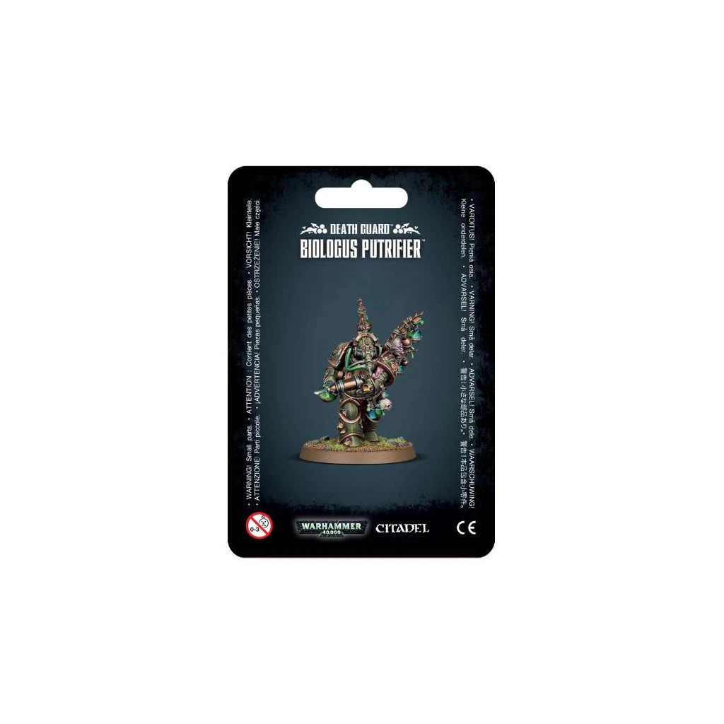 L’oeuvre majeure de la Death Guard consiste à diffuser les bienfaits de Nurgle partout dans l’espace réel. Les Biologus Putrifiers y jouent un rôle crucial, car ce sont eux qui raffinent les lots de bouillon de culture produits par les Foul Blightspawn, et les distillent pour les magnifier. Leur râtelier dorsal est chargé de grenades buboniques remplies des pires souches pathogènes des usines à maladies. Chaque salve de ces ignobles engins répand l’épidémie, et les pistolets injecteurs gratifient leurs cibles de doses d’ignominie concentrées.