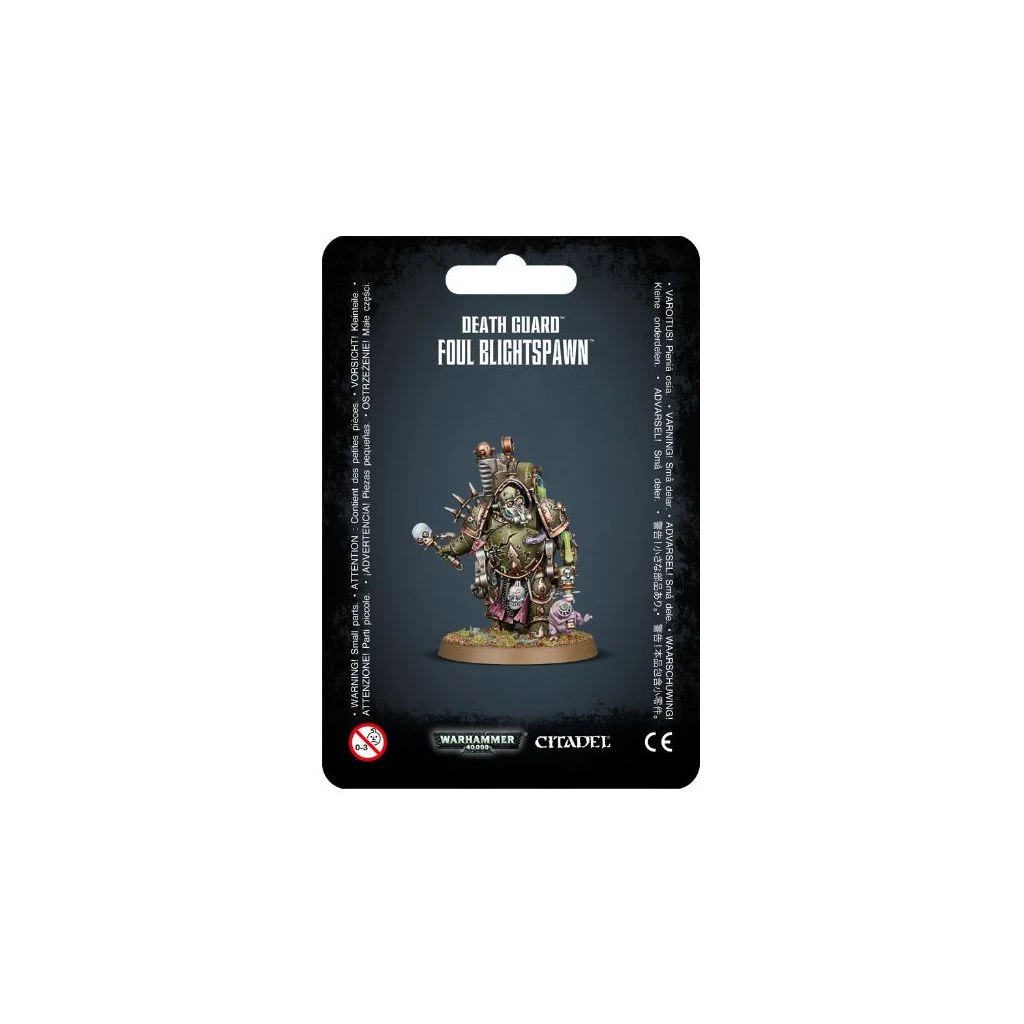 Ce kit plastique contient les composants nécessaires pour assembler un Foul Blightspawn. Il porte sur le dos un énorme réservoir de mauvais augure – l’incubatum – débordant de maladies virulentes, qu’il répand sans discrimination et avec une joie malveillante. La lance à peste qu’il manie de la main gauche dégouline de cette mixture ignoble, sans souci de ce qu’elle pourrait toucher. Une fissure dans l’armure permet d’entrevoir le degré préoccupant des altérations du sujet; il a dans les tripes les rouages et les pistons d’un appareil sinistre. En plus d’être couverte de moisissure et de rouille, son armure regorge de crânes et d’icônes de Nurgle. Il y a même en option un Nurgling serrant une grenade bubonique, pour décorer le socle.