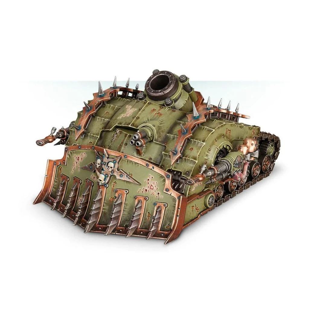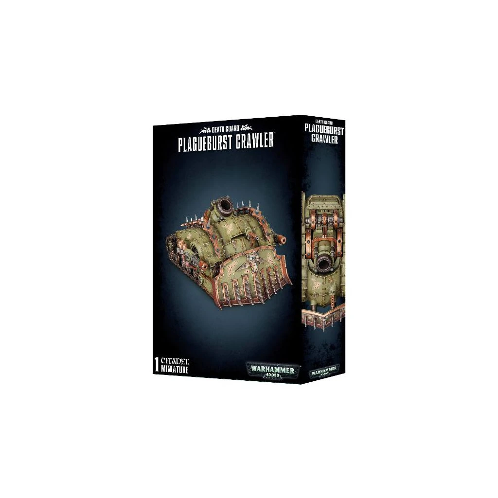 Le Plagueburst Crawler est un char de siège pesant et redoutable, pourvu d’énormes lames d’éperonnage, d’un épais blindage et de moteurs démoniaques qui lui confèrent une incroyable résilience. Son mortier Plagueburst possède un arc de tir parabolique et une portée terrifiante, tandis que leurs obus associent des explosifs à large rayon et des nuages de spores corrosives pour infliger des dégâts comparables à ceux du canon Demolisher impérial. Le reste de l’armement du Crawler vise justement à massacrer l’ennemi à courte portée, en crachant une vase toxique et des grêles de balles virales.