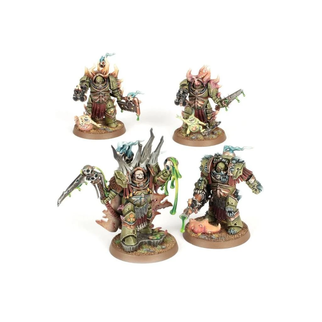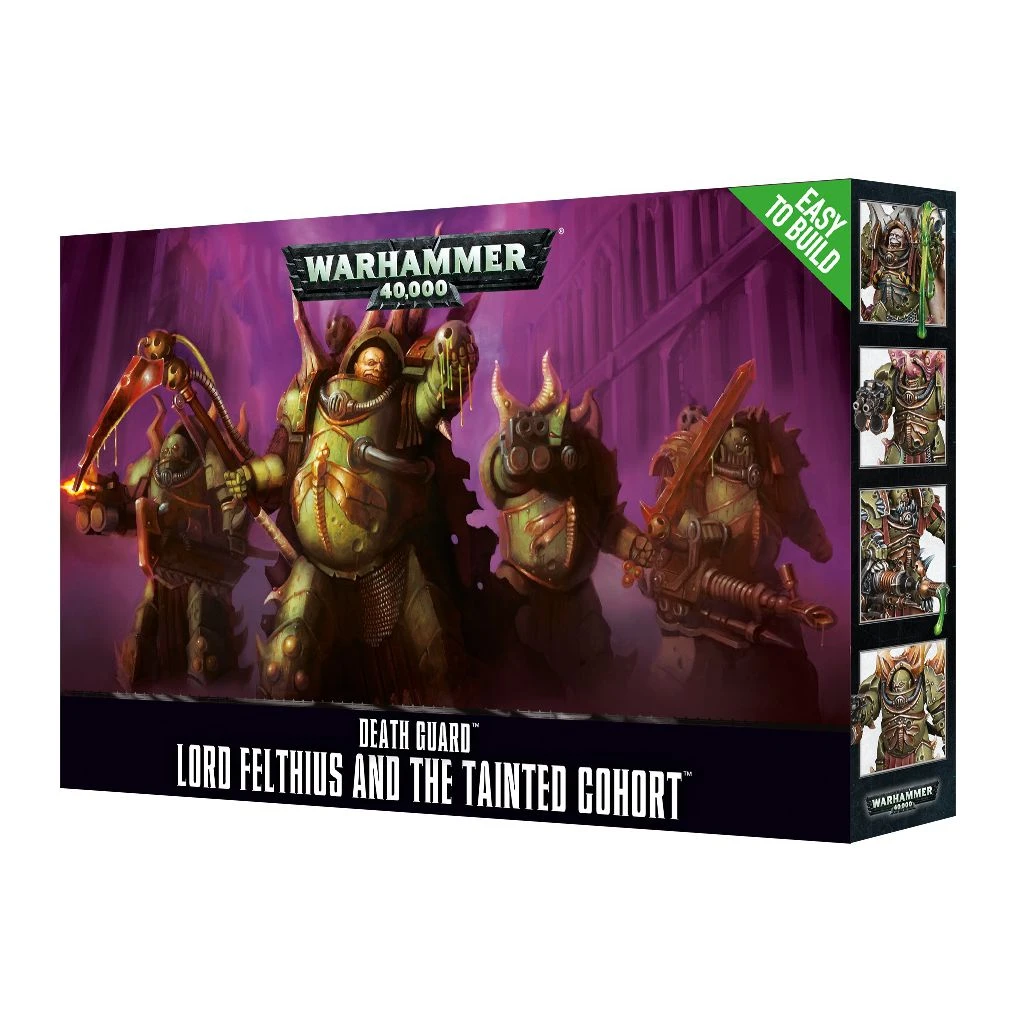 Il existe une grande variété de champions malades qui conduisent la Death Guard à la guerre. Des modestes colonies aux vectoriums et aux cohortes septiques, jusqu’aux compagnies de la peste et aux vaisseaux des Flottes de la Peste, les seigneurs de la Death Guard occupent toute la hiérarchie de la Légion renégate. Le Seigneur Felthius, nanti de son armure Terminator et accompagné des trois membres de sa Cohorte Souillée, en est un exemple notable.