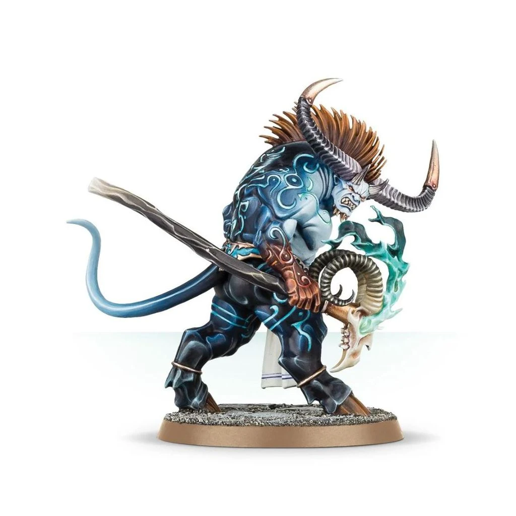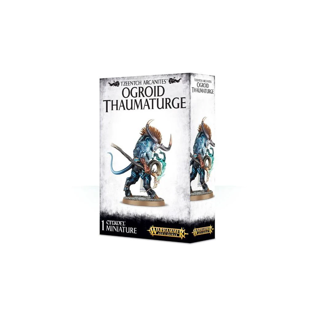 On sait très peu de choses au sujet des Ogroid Thaumaturges, si ce n’est qu’ils excellent au combat. Sous l’effet de leur rage, leur peau irradie l’énergie occulte, et des signes cabalistiques luisent sur leur corps musclé. Des flammes de Tzeentch multicolores dansent autour d’eux tandis qu’ils déchiquettent leurs ennemis à mains nues, et leurs confèrent la force de percer une armure de sigmarite avec leurs cornes imposantes. Chose troublante, ces êtres ne sont pas que des brutes, car ils possèdent un impressionnant talent magique, et ils peuvent décharger des rais ardents sur l’ennemi.