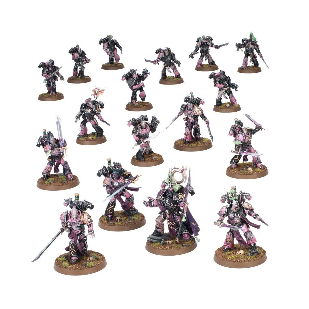Les Infracteurs sont menés par un Obsessif qui peut être armé d’un pistolet à plasma ou d’un pistolet bolter, et d’un fouet d’extase ou d’une épée énergétique. Vous trouverez de nombreuses options décoratives pour personnaliser votre escouade. Ces soldats peuvent autrement être assemblés en tant que Tourmenteurs.