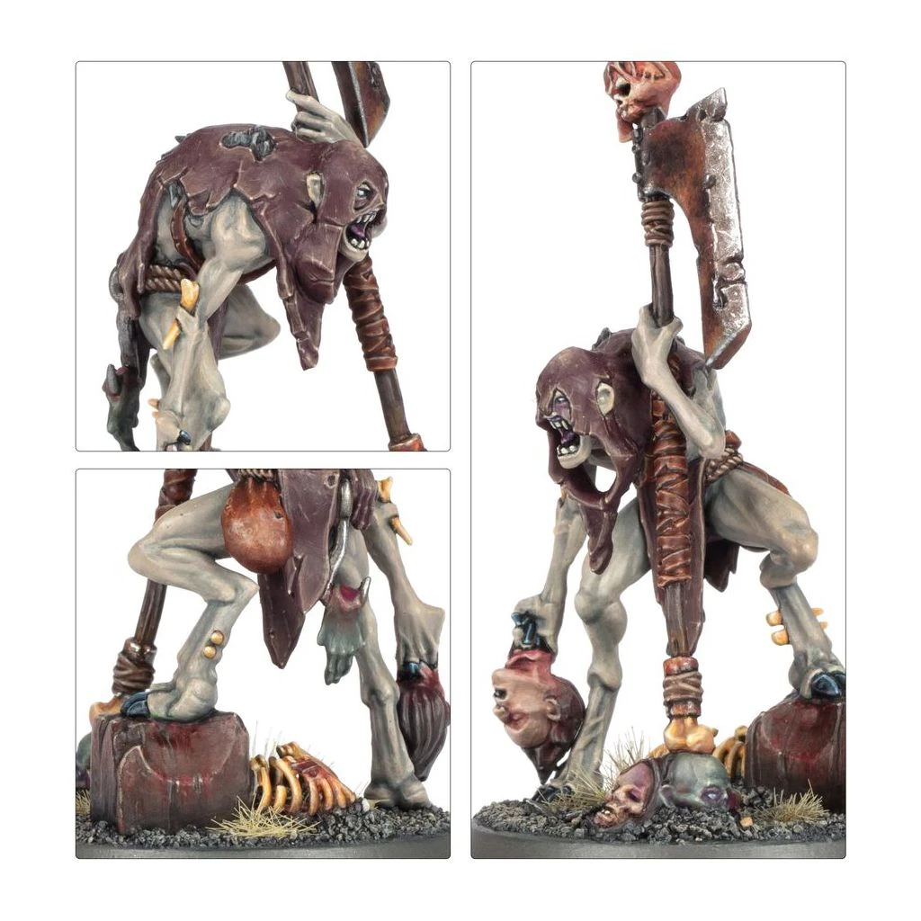 Ce kit plastique permet d’assembler un DĂ©capiteur Royal, un bourreau goule qui sert la noblesse des Cours de Mangechairs. Le DĂ©capiteur coupe la tĂȘte des plus puissants ennemis Ă l’aide d’une Ă©norme hache rouillĂ©e, ce qui plonge les goules alentour dans une frĂ©nĂ©sie de massacres. Ce kit propose un choix de deux tĂȘtes diffĂ©rentes: une ornĂ©e de babioles en os, et l’autre masquĂ©e par une sinistre cagoule de bourreau.