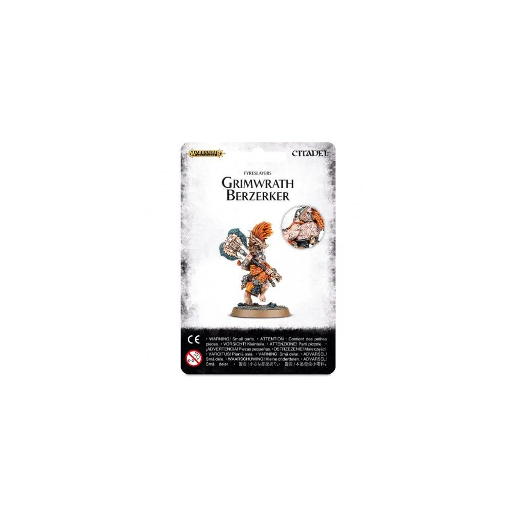 Les guerriers les plus forts et les plus habiles de leur loge, ce qui n’est pas un mince exploit chez les Fyreslayers, sont les Grimwrath Berzerkers, incarnations de la fureur de Grimnir. Ces champions obstinés ne sauraient se contenter de quelques runes d’ur-or, et ils sont couverts de dizaines de ces puissants artéfacts, qui éveillent en eux l’esprit de Grimnir, en leur conférant une résolution impitoyable, égale à leur force démesurée. La férocité de cet esprit va bien au-delà de la colère, au point que les légendes parlent de Grimwrath Berzerkers continuant à se battre malgré des plaies potentiellement fatales pour le plus gros démon, pour ne rendre l’âme qu’une fois leur mission accomplie, et le dernier ennemi abattu.