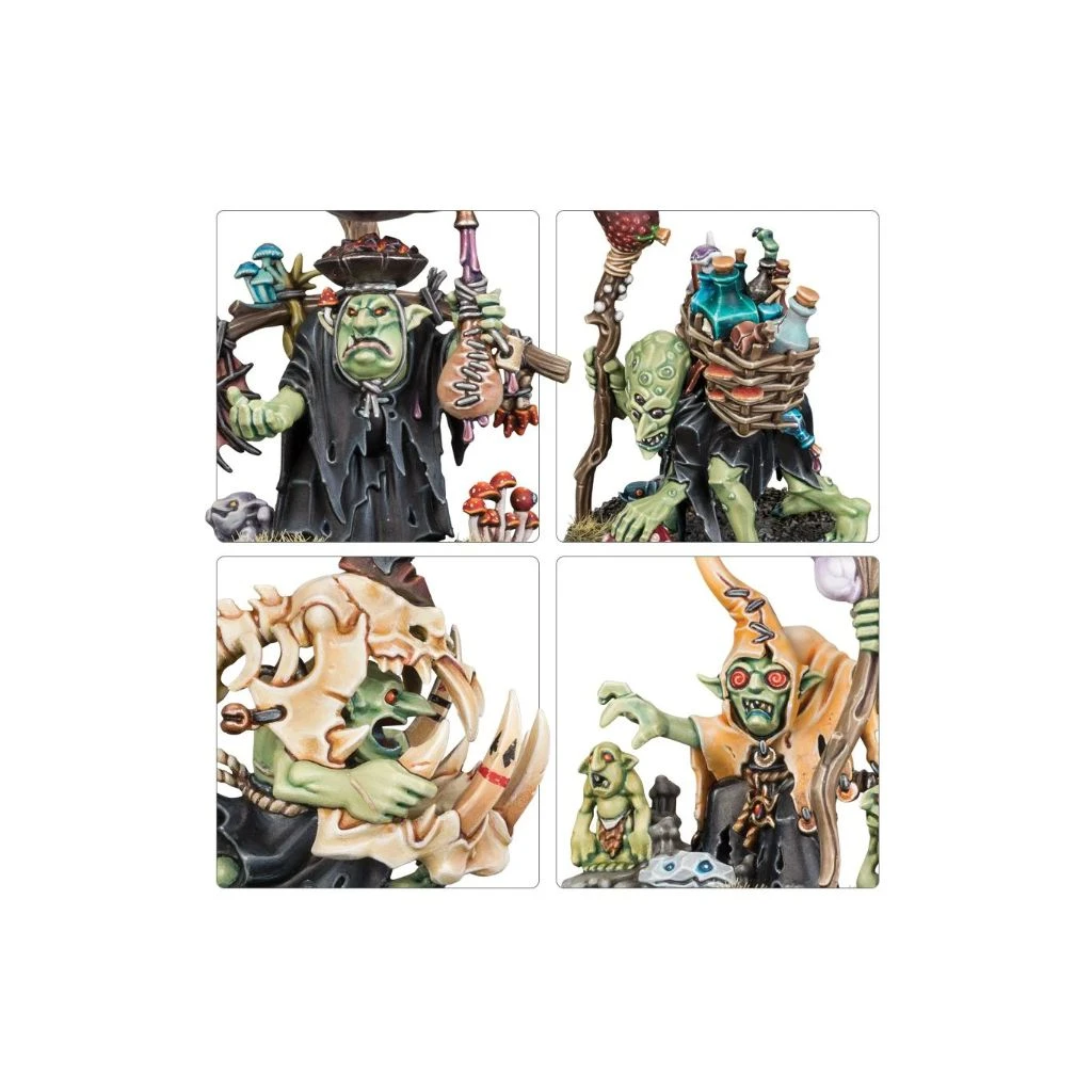 Grâce à ce kit, vous pouvez monter tout un Gobbapalooza – un concile de Grots qui propose à votre armée un large éventail de tours à jouer. Pris ensemble mais déployés séparément, ses membres ont chacun des aptitudes uniques et puissantes. Vous trouverez là cinq héros:
