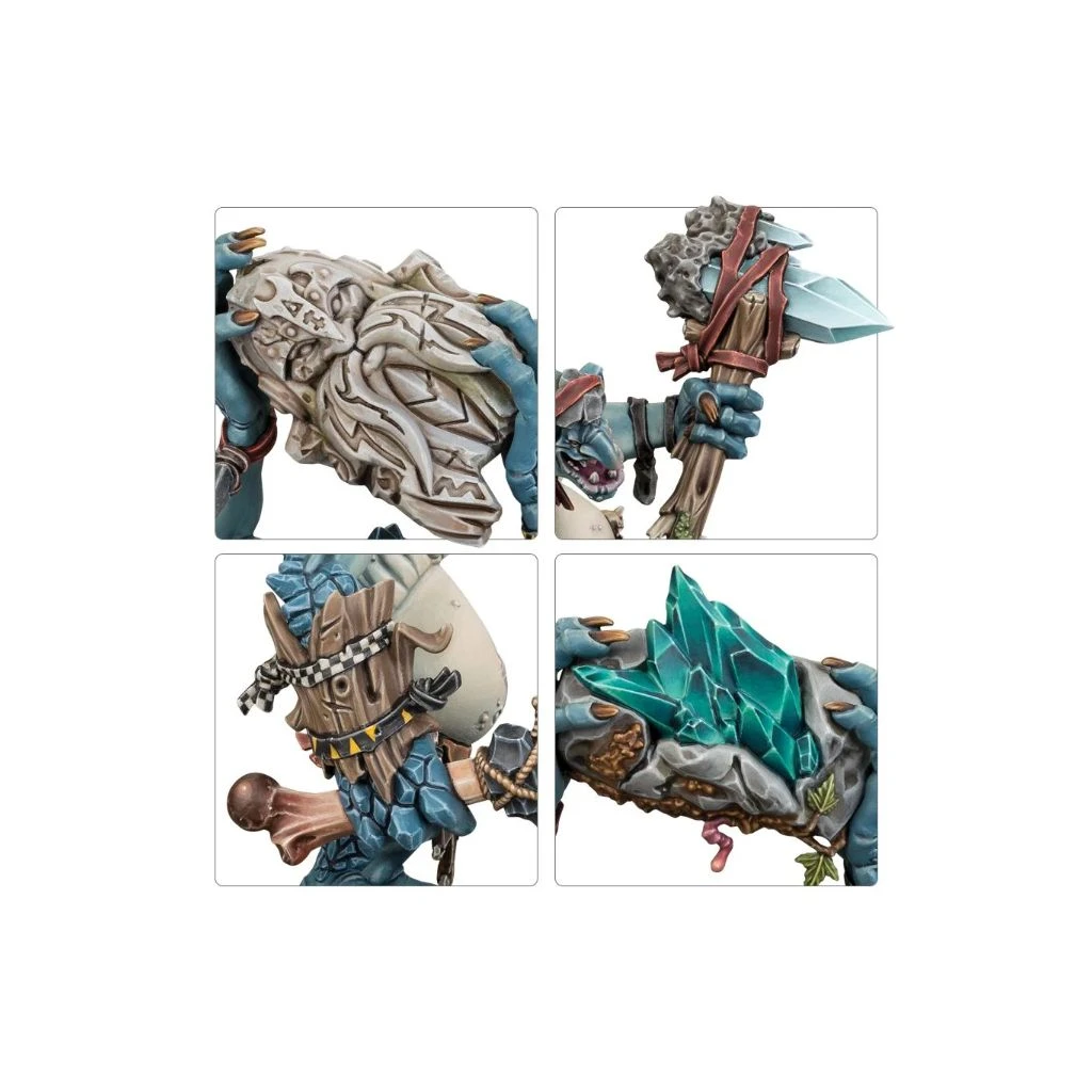Ce kit vous permet de monter et de différencier trois Rockgut Troggoths, grâce à tout un choix de composants interchangeables. Entre toutes les têtes différentes, les armes au choix et les poses proposées, vous pourrez aligner une armée de ces brutes sans que ne serait-ce que deux d’entre elles soient identiques.