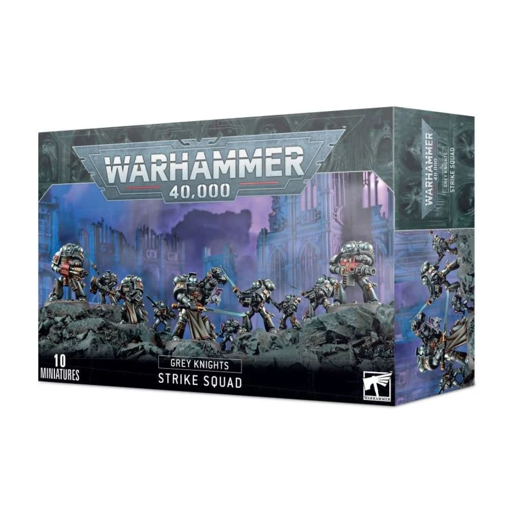 Les Strike Squads forment souvent l’avant-garde des assauts de Grey Knights. Avec leurs armures moins pesantes que celles des escouades Terminator, ces vétérans frappent vite et sans faillir en exploitant les failles de la ligne adverse. Dès l’ouverture des hostilités, un officier Grey Knight dépêche une ou plusieurs Strike Squads pour capturer les lieux cruciaux et les objectifs-clés, en recourant à la frappe par téléportation pour atteindre sans délai les coordonnées les moins accessibles. De telles escouades sont essentielles – sans leur reconnaissance et leurs préparatifs, les escouades Terminator seraient pareilles à un marteau manié à l’aveuglette.