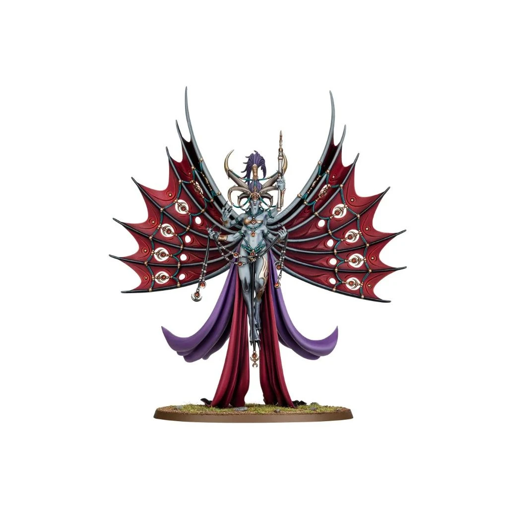 Ce kit plastique en 50 composants permet d’assembler une Dexcessa, the Talon of Slaanesh, et il est fourni avec un socle ovale Citadel de 105mm. On peut, sinon, assembler cette figurine sous la forme de Synessa, the Voice of Slaanesh.