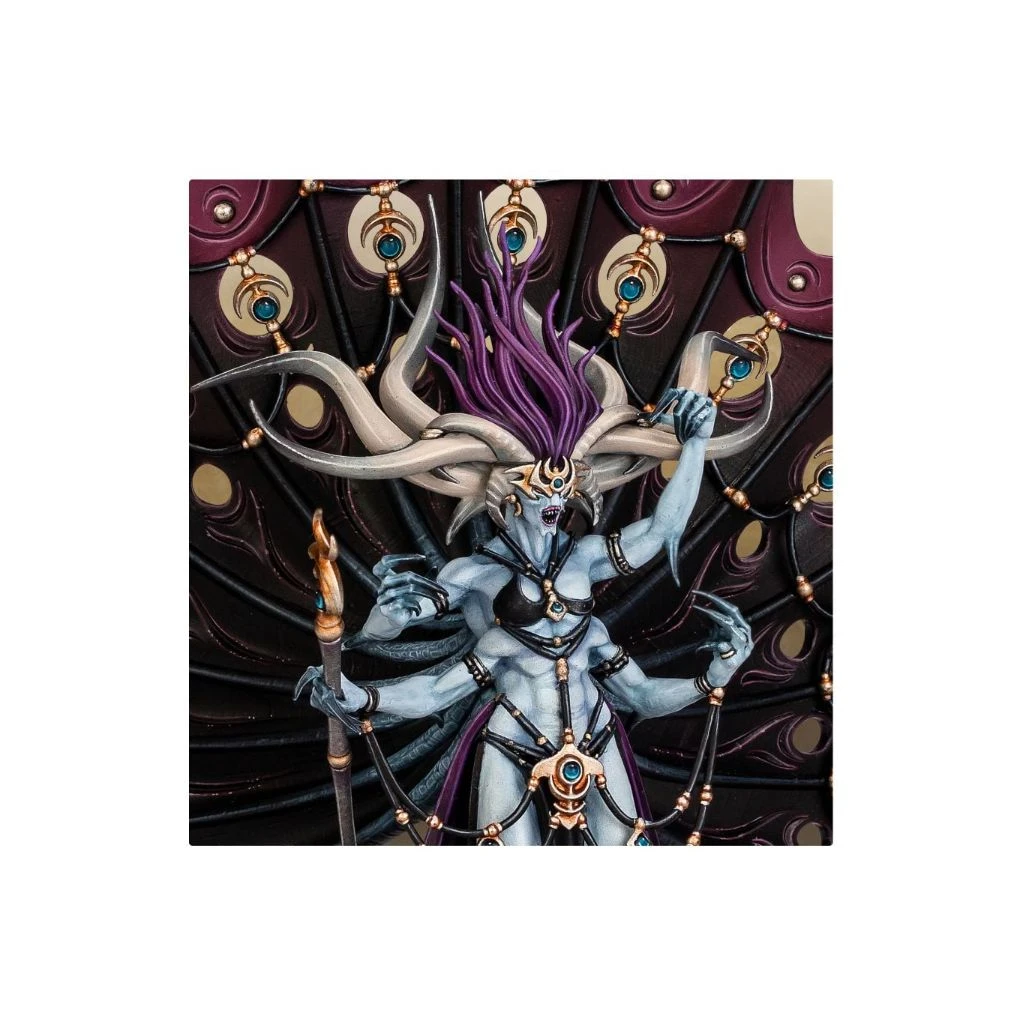 Mesurant plusieurs fois la taille d’un simple mortel, Dexcessa est sur le champ de bataille un véritable derviche du carnage, prompt à étriper ses ennemis à coups de griffes aussi bien qu’avec son sceptre démesuré. La souplesse et l’agilité de la Serre de Slaanesh lui font échapper aux coups des guerriers mêmes les plus expérimentés, permettant au démon de franchir impunément leurs lignes jusqu’à détacher la tête de leur général de ses épaules.