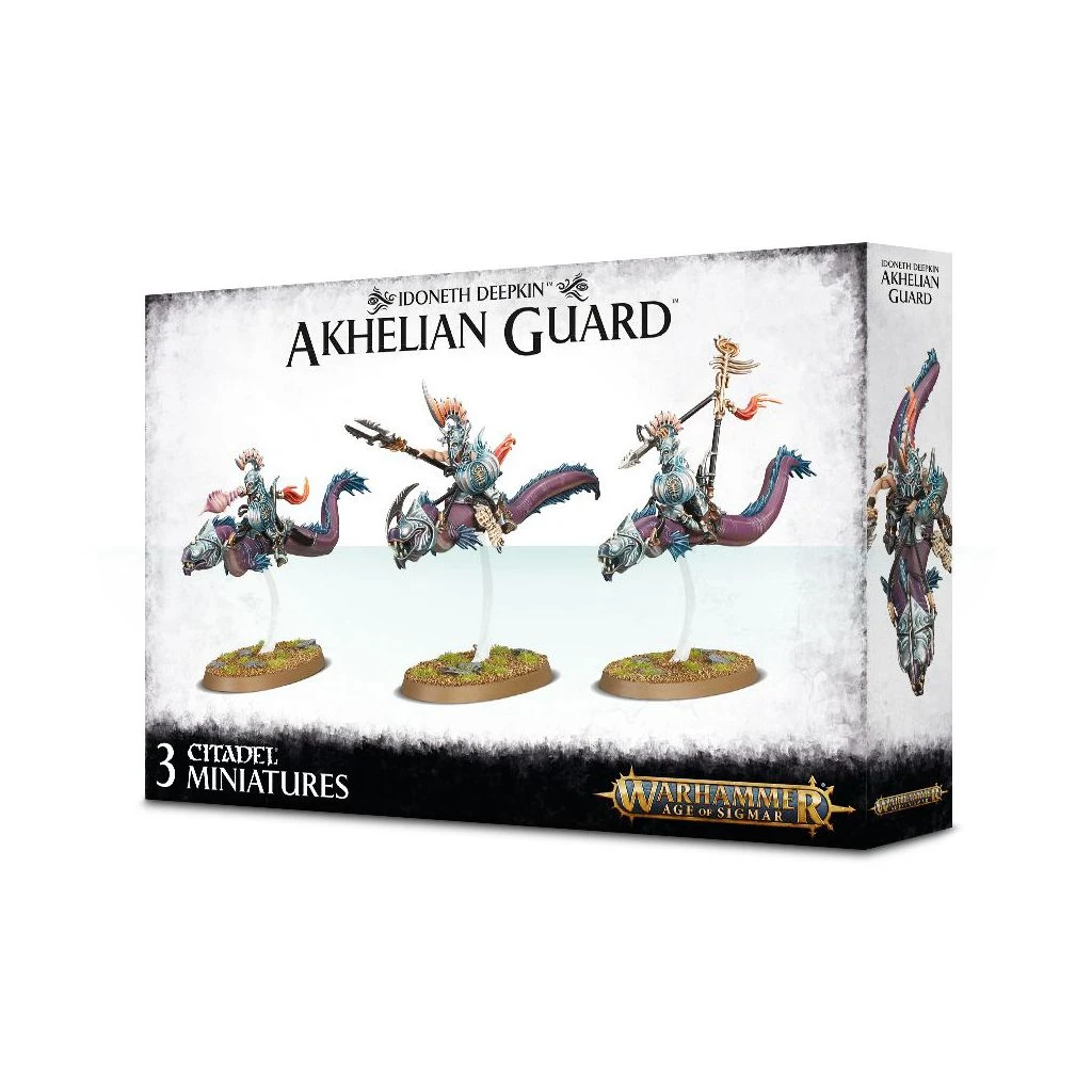 Aucune autre troupe n’incarne mieux les méthodes guerrières des Idoneth que l’Akhelian Guard. Chevauchant des anguilles Fangmoras, ces guerriers se battent en formations flexibles, idéales pour les assauts rapides et les replis soudains, typiques des tactiques de harcèlement que privilégient les Aelfs des profondeurs. La Morrsarr Guard est armée de lances choc et de boucliers galvaniques, qui canalisent l’électricité de ses montures Fangmoras en une décharge meurtrière à courte portée. La légende évoque des formations de Morrsarr Guard si imposantes que la puissance combinée de leurs décharges biovoltaïques aveuglait et désemparait l’armée ennemie tout entière.