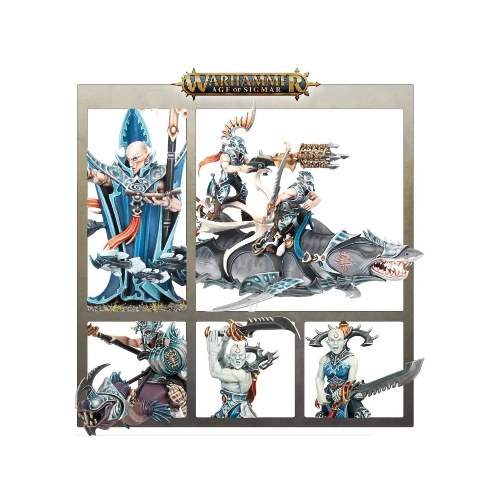 Les Abyssaux Idoneths sont une mystérieuse race d’aelfes qui vivent dans les océans des Royaumes Mortels, émergeant de leur réclusion aquatique pour s’emparer des âmes des habitants des terres. Guidés par la sagacité ésotérique et la magie marine d’un Scruteur d’Âmes, les Namarti aveugles avancent au combat, ouvrant la voie aux arrogants nobles akhéliens, qui chevauchent de redoutables bêtes aquatiques capables de nager dans l’air en suivant des courants fantasmatiques.