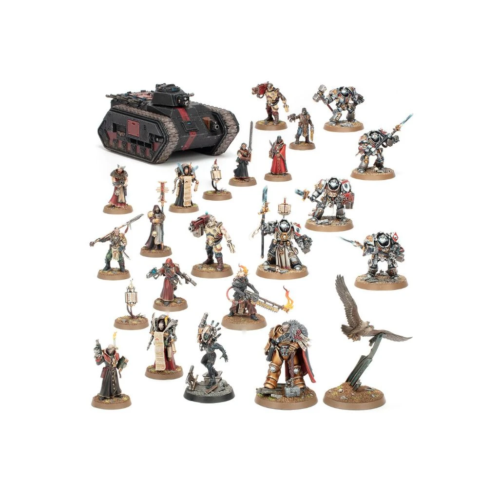 Avec cette incroyable battleforce d’Agents de l’Imperium, vous pouvez assembler l’Inquisiteur Coteaz, un Puritain zélé de l’Ordo Malleus, entouré d’un cadre d’Agents Inquisitoriaux spécialisés, d’un Prêtre du Ministorum fanatique et d’une unité de Terminators Grey Knights, des chasseurs de démons d’élite. Un robuste char Chimera vous permettra de transporter tous les agents incapables de se téléporter jusqu’à l’endroit où leur présence est requise, tandis qu’un mortel Assassin Culexus complète cette force redoutable.