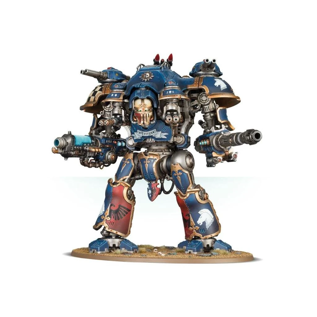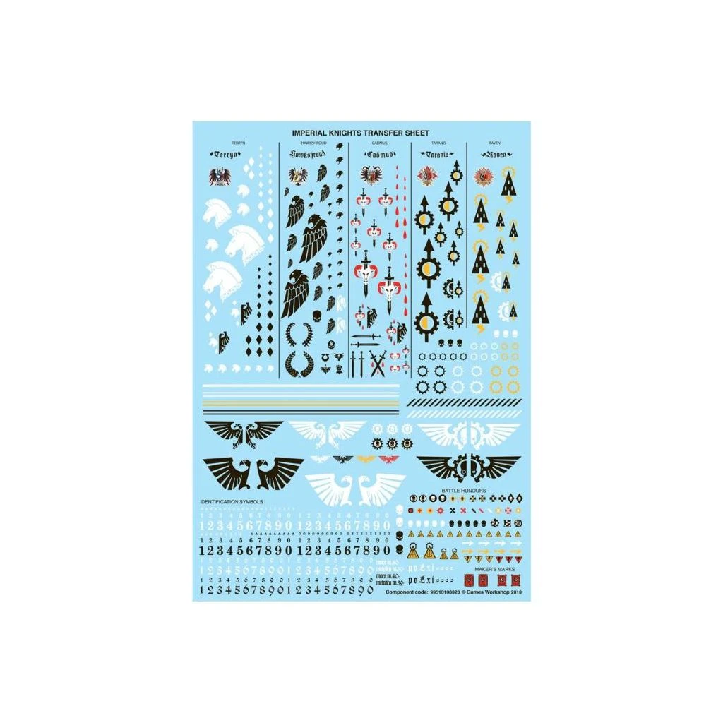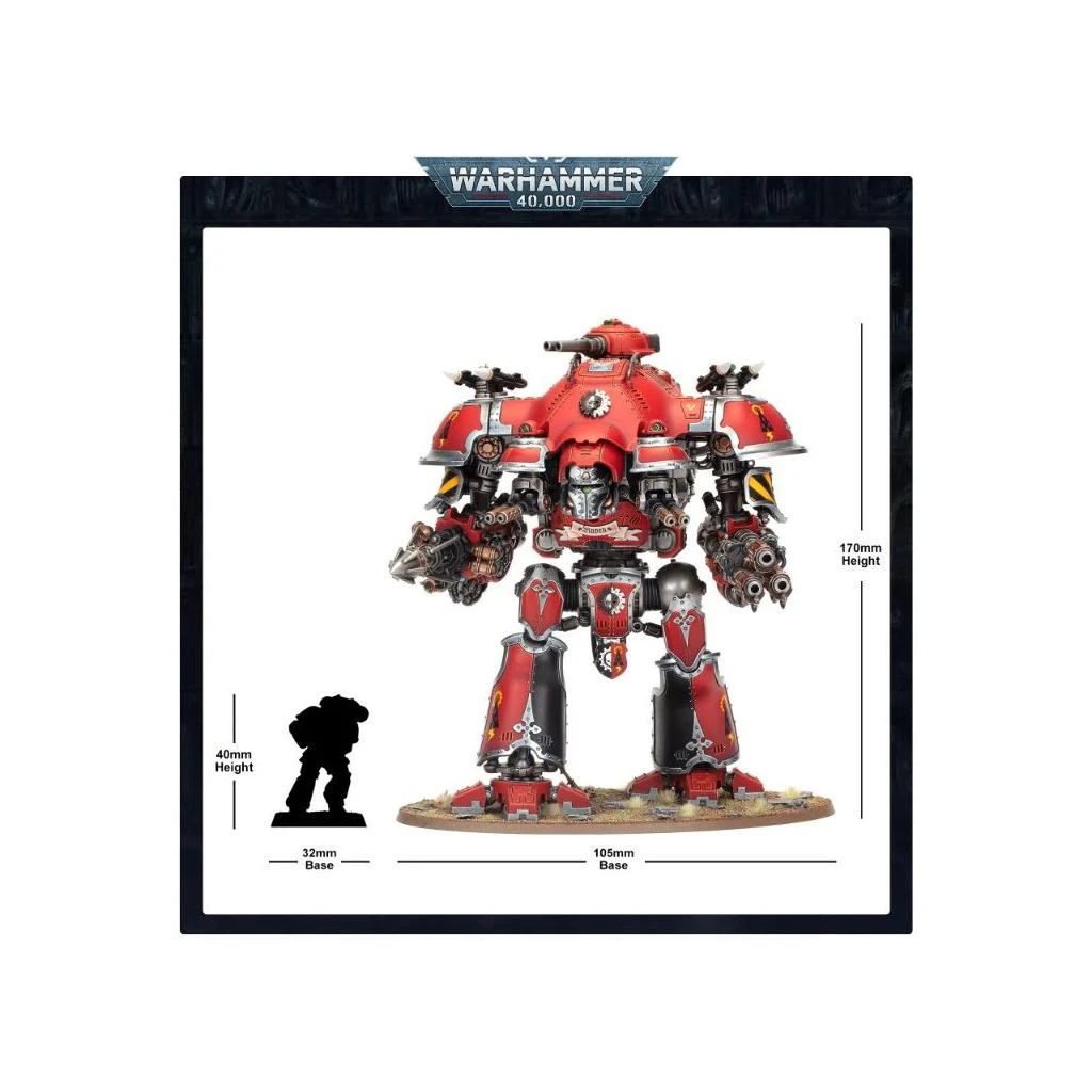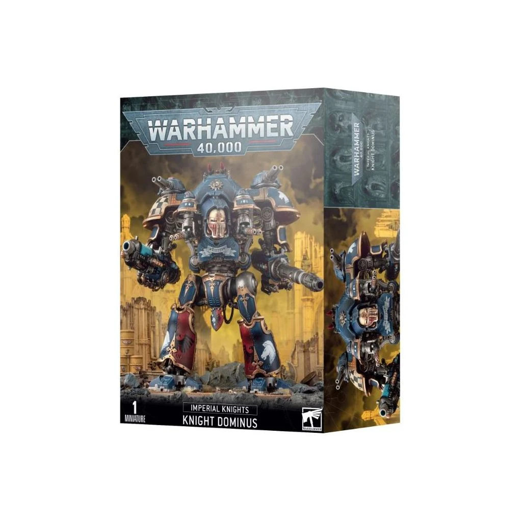 Ce kit se compose de 172 pièces en plastique, et est fourni avec un socle ovale Citadel de 170mm. Il comprend également une planche de décalcos de Dominus représentant l’héraldique des Chevaliers Impériaux. Cette figurine est fournie non peinte et nécessite assemblage.