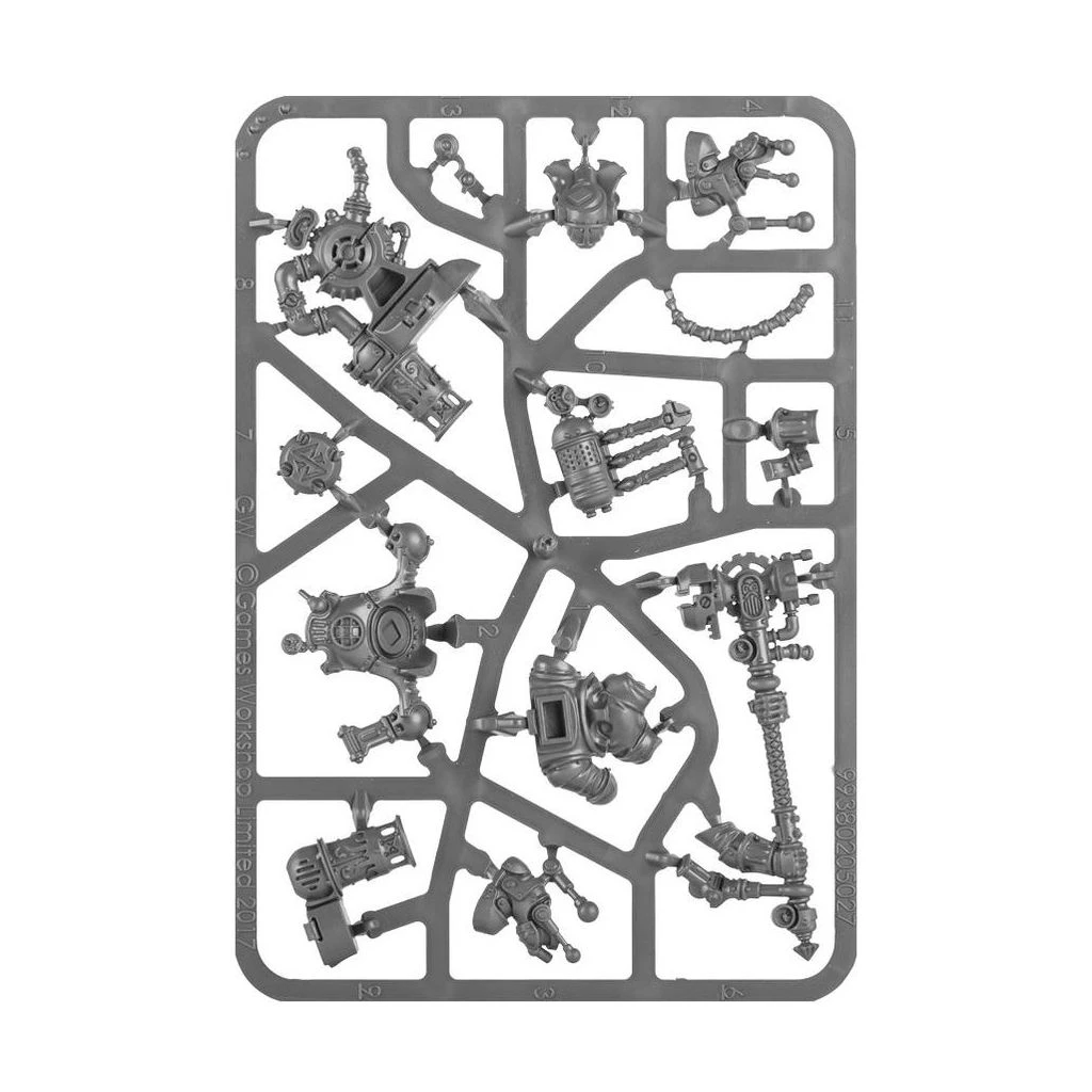 Ce kit plastique contient les pièces nécessaires pour assembler un Maître-endrinieur. Couvert de détails évoquant son génie en maintenance des machines complexes des aéroflottes, il manie un marteau d’étherforce massif – lequel est connecté à sa combinaison par des bras de métal et des conduits, ce qui suggère un poids que lui seul peut soulever. Son casque comporte des optiques d’assistance au diagnostic, plus l’Œil Divin, un émetteur de faisceau qui peut souder ou découper du métal (ou accessoirement des ennemis), et il dispose d’une batterie d’outils et d’équipement pour les réparations de fortune; le Maître-endrinieur va jusqu’à emmener une enclume au combat pour mieux procéder aux réparations!