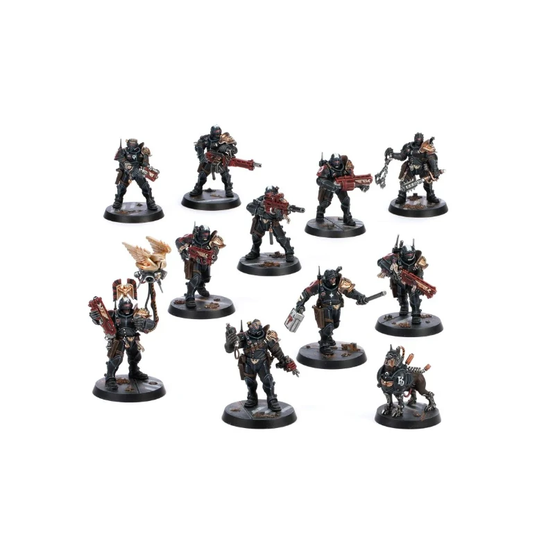 - Une impitoyable escouade de l’Adeptus Arbites qui peut rejoindre les armées de l’Imperium dans Warhammer 40,000, ou agir comme Kill Team complète