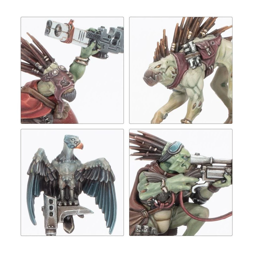 Ce kit en plastique permet d’assembler une escouade de 10 mercenaires Kroots vétérans, accompagnés de deux Chiens Kroots. Ces figurines peuvent être utilisées en tant qu’agents dans les parties de Kill Team ou être incorporées au sein des armées de l’Empire T’au dans les parties de Warhammer 40,000. Le kit contient nombre d’options et d’accessoires pour personnaliser votre kill team, ainsi que des éléments pour assembler des spécialistes, comme le Sang-froid bionique, le Rabatteur rusé, ou encore le Pisteur dompteur d’oiseaux.
