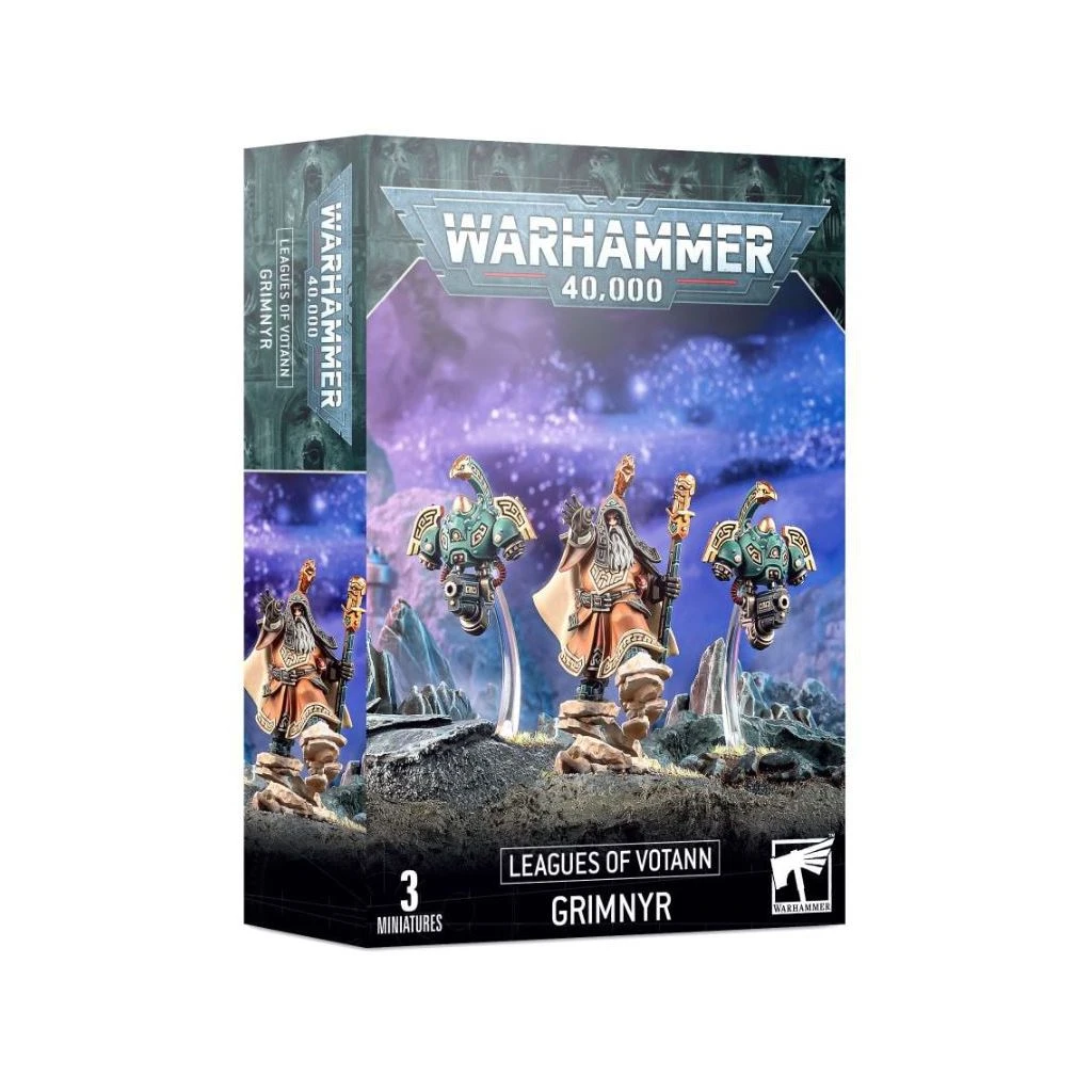 Les Grimnyrs, également appelés Ancêtres Vivants, possèdent la sagesse des Votann et sont ce qui se rapproche le plus d’un clergé au sein des Ligues de Votann laïques. Conçus avec une clonetrame psychoactive qui leur permet d’activer les technobarrières comme les sceptres de protection et les CORV à concentration d’énergie, ces Cognats sont capables de déchaîner la puissance de l’immaterium contre leurs ennemis.