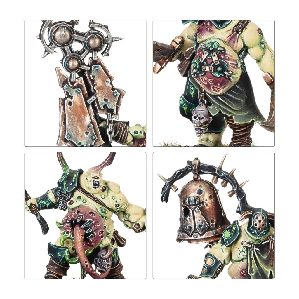 Ce bataillon est mené par un Émissaire du Déclin, une incarnation de l’influence corruptrice de Nurgle. Quatre Rouillarques Putregouilles vrombissants et bouffis survolent le champ de bataille, en avant-garde d’unités pourrissantes du Crédo de Putrefange et de Pesticrates Putrides. Tous ces combattants ont pour seul objectif de répandre les bienfaits de Grand-père Nurgle.