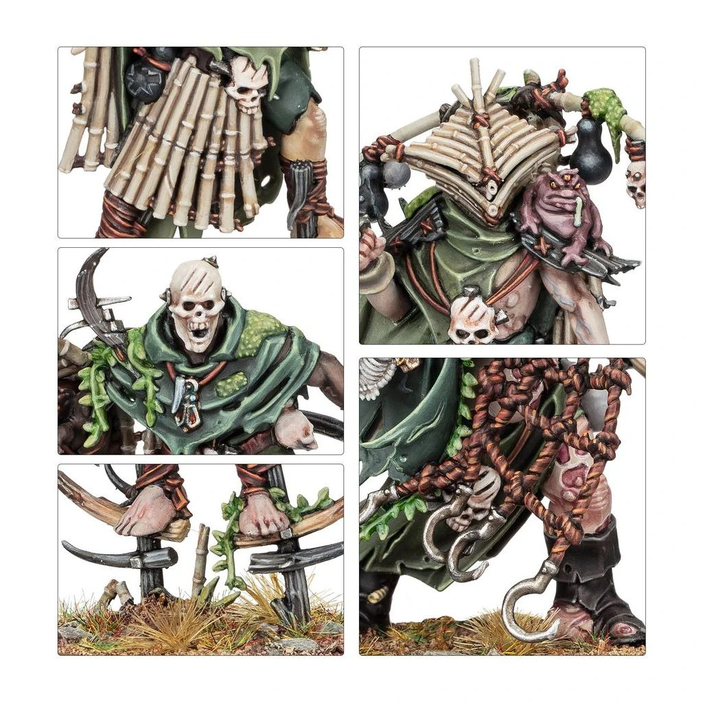 Les Putrescents de Nurgle titubent depuis les désolations fétides, bénis par les boursouflures impies de leur divinité tutélaire. Où qu’ils aillent, les maladies se répandent sans entrave et des armées entières sont infectées par les dons généreux de Nurgle. Ils sont l’entropie incarnée, car leur dieu patient sait que toute vie finira par se décomposer.