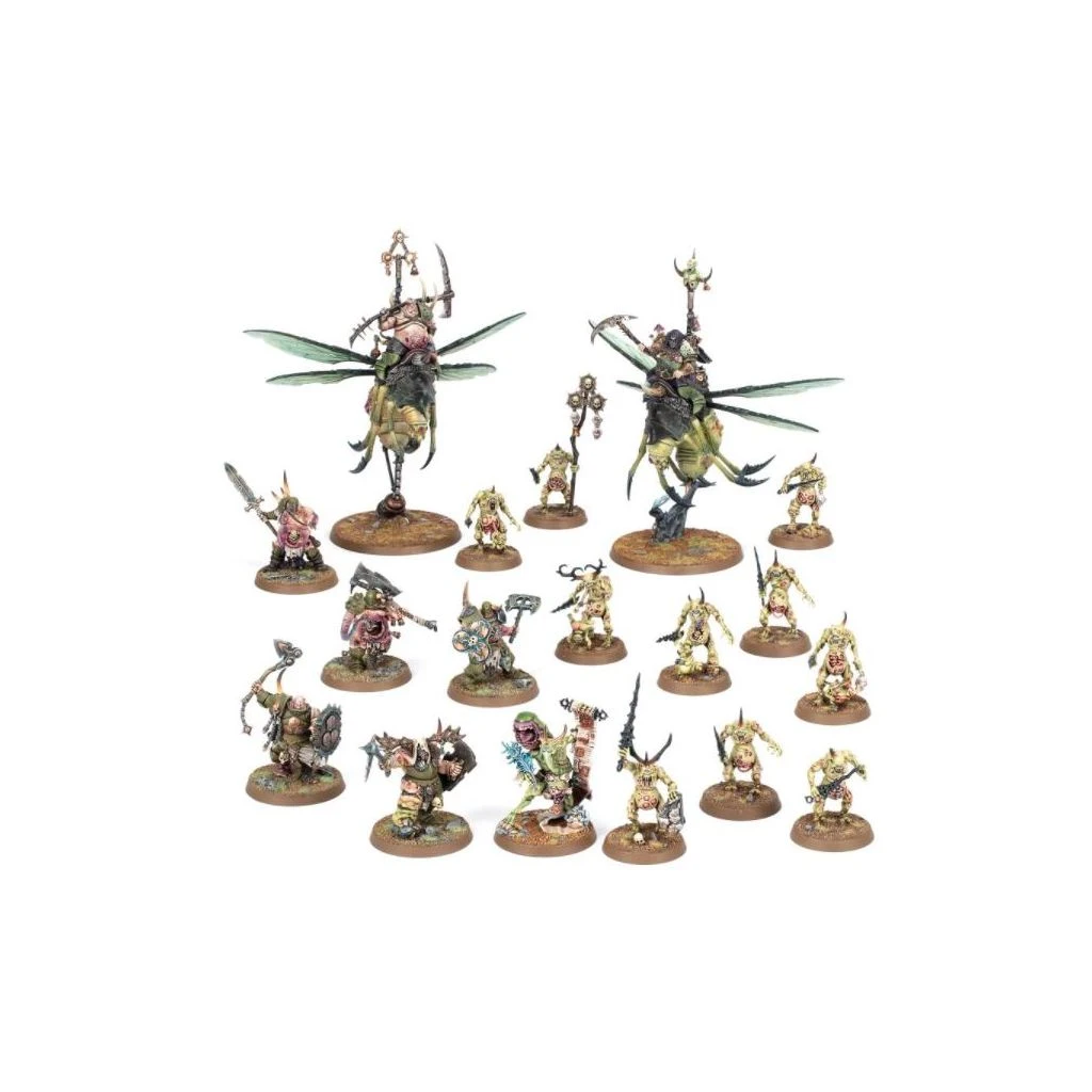 Si vous voulez aider à distribuer les cadeaux de Grand-père Nurgle dans les Royaumes Mortels, cette boîte d’Avant-garde est le point de départ idéal de votre armée de Putrescents, ou pour gonfler une horde pourrissante qui existe déjà. Comprenant un Héros et deux choix de Ligne, c’est une armée complète en une seule boîte, vous permettant d’aligner une légion flétrie sur la table de jeu avec ces seules figurines.