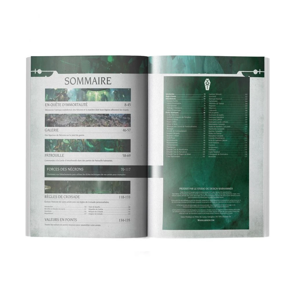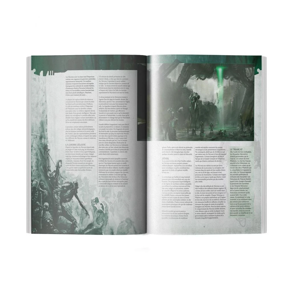 – Un historique terrifiant explorant les Nécrons éveillés, de leur histoire incommensurablement ancienne à la structure des dynasties tyranniques